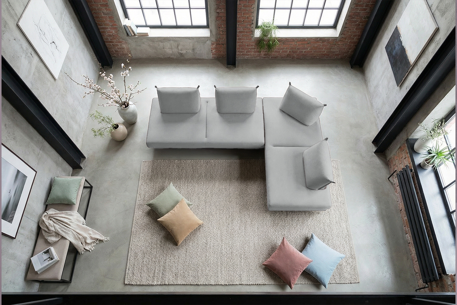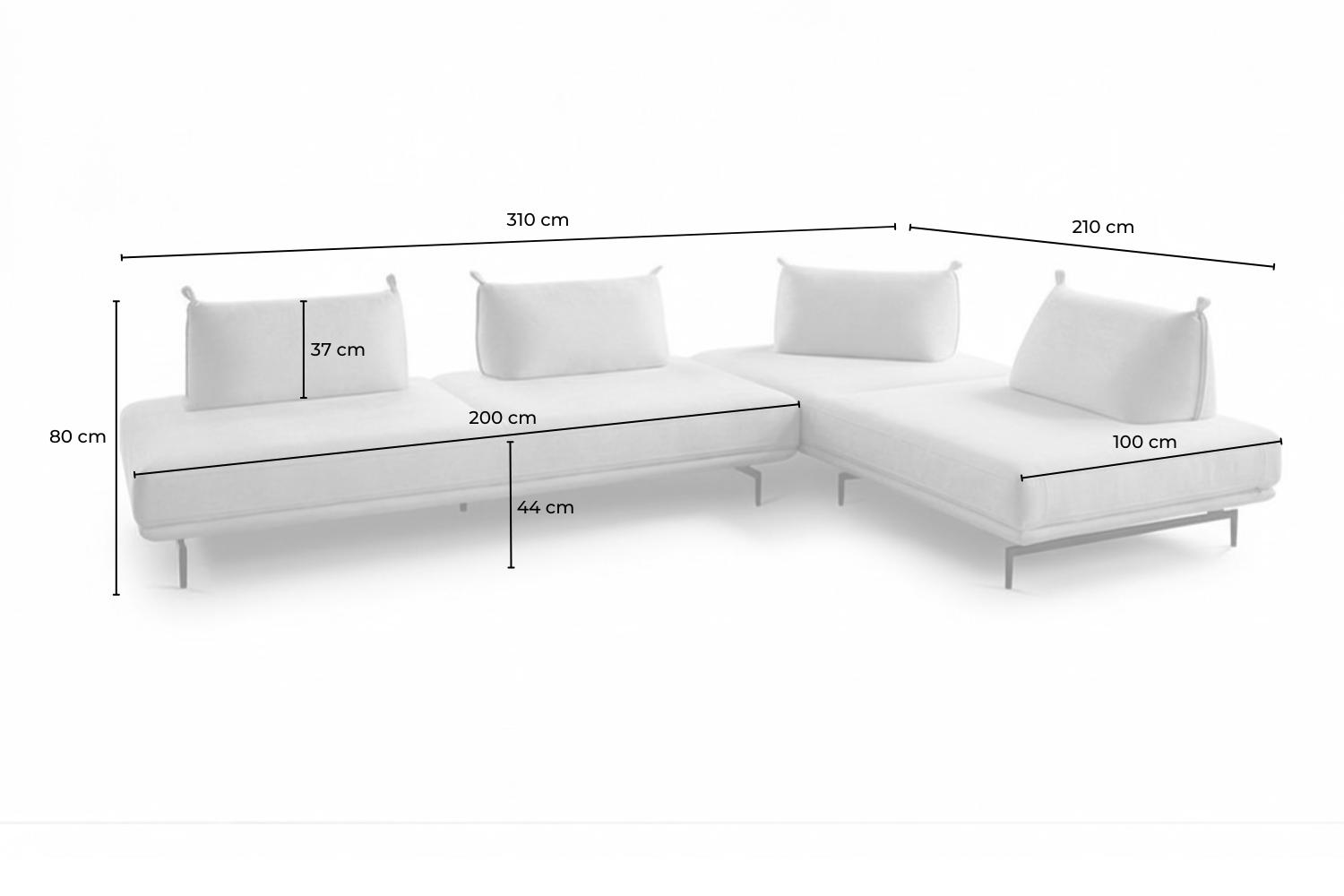 Vier flexible Rückenkissen fungieren als Rückenlehnen und können nach Belieben positioniert werden, um individuellen Komfort zu bieten. Ob als Ecksofa für gesellige Abende, als Schlafsofa mit einer Liegefläche von 210x200 cm oder als zwei 2-Sitzer – dieses Sofa passt sich Ihren Bedürfnissen perfekt an.