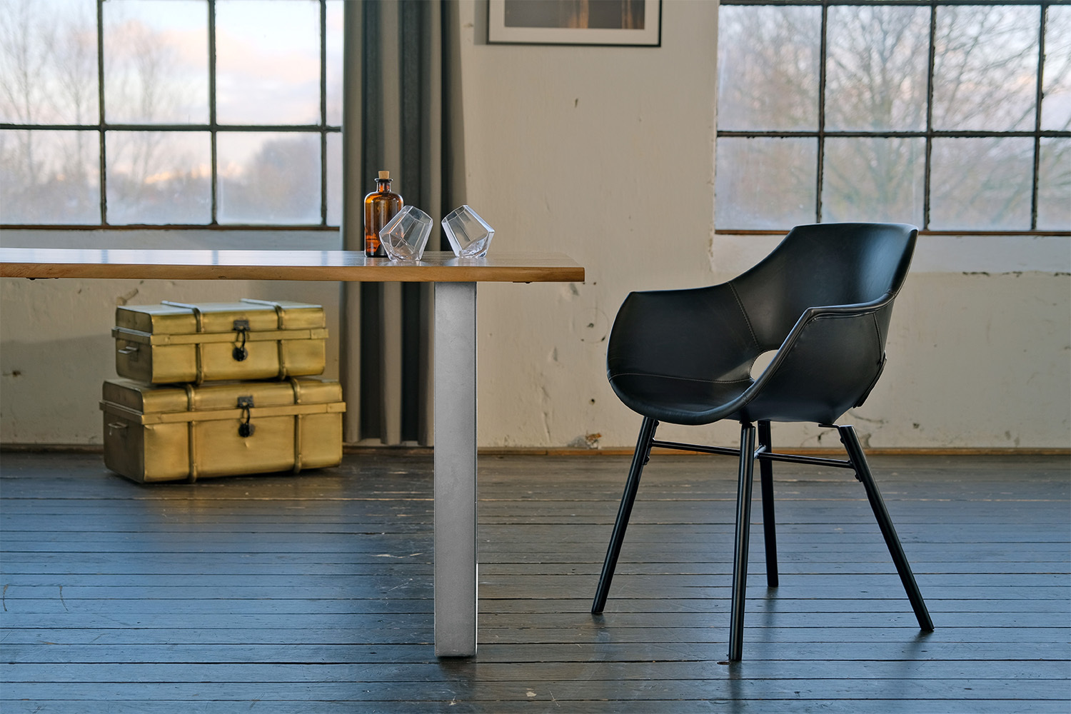 Stuhl ZAJA: mit schwarzem Kunstlederbezug