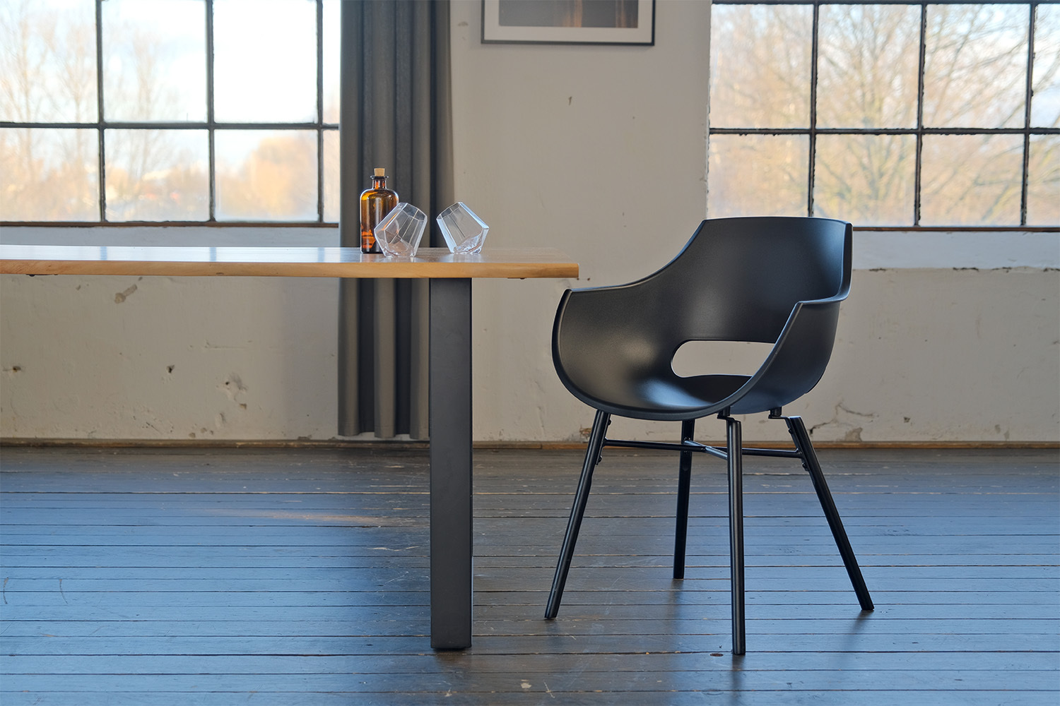 schwarz lackierte Holzbeine