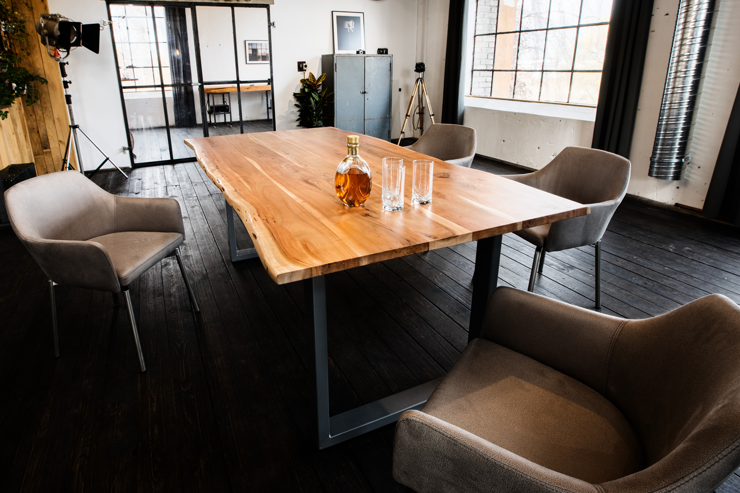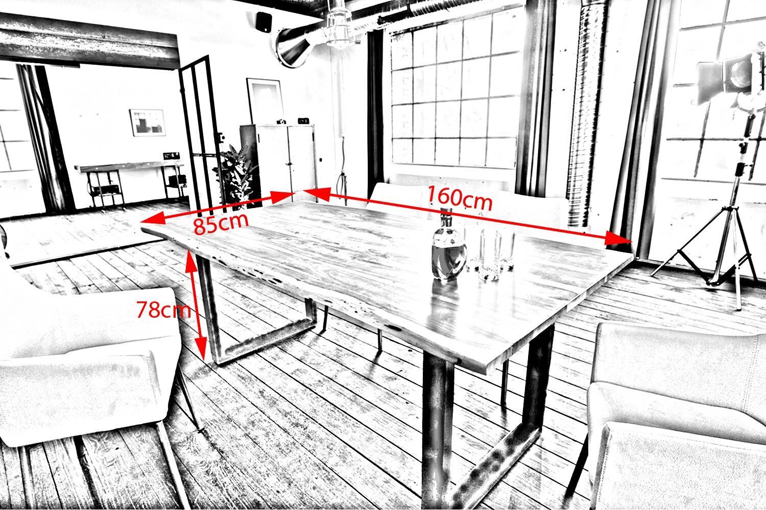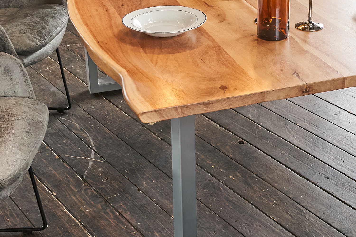 Wunderschöner Esstisch, mit Massivholzplatte, der sich wunderbar in das moderne, aber auch das rustikal gemütliche Wohnambiente integrieren lässt. Besonderes Highlight des Esstisches sind die Tischkanten, die den natürlichen Formen eines Baumes entsprechen. Das kubische Metallgestell bildet hierzu einen gelungenen Kontrast, der dem Massivholz Esstisch einen Hauch industriellen Charme verleiht.WICHTIGER HINWEIS