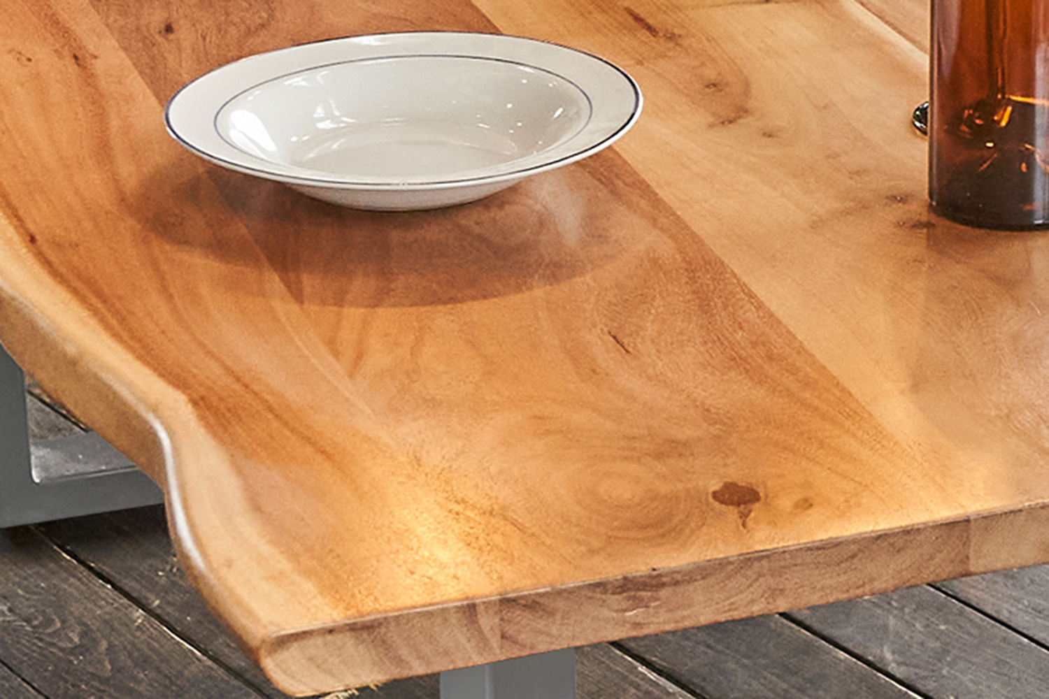 Bei diesem Baumkantentisch handelt es sich um ein Naturprodukt. Das macht ihn zu einem Unikat, jeder Tisch ist einzigartig. Maßabweichungen, Astlöcher und Risse sowie kleinere Unebenheiten sind warentypisch und kein Reklamationsgrund. Vorhandene Risse werden noch in der Herstellung mit Stücken der gleichen Holzart ausgefüllt. Daraus resultierende farbliche Abweichungen stellen ebenfalls keinen Reklamationsgrund dar.