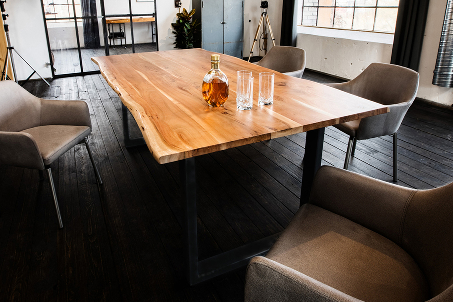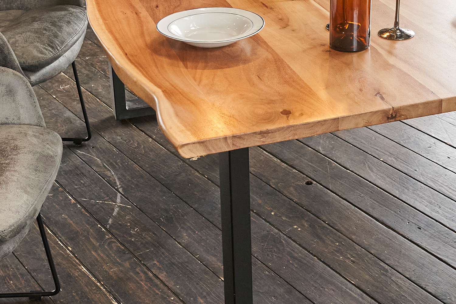 KAWOLA Esstisch LORE massiv mit Baumkante Fußfarbe schwarz oder silber
