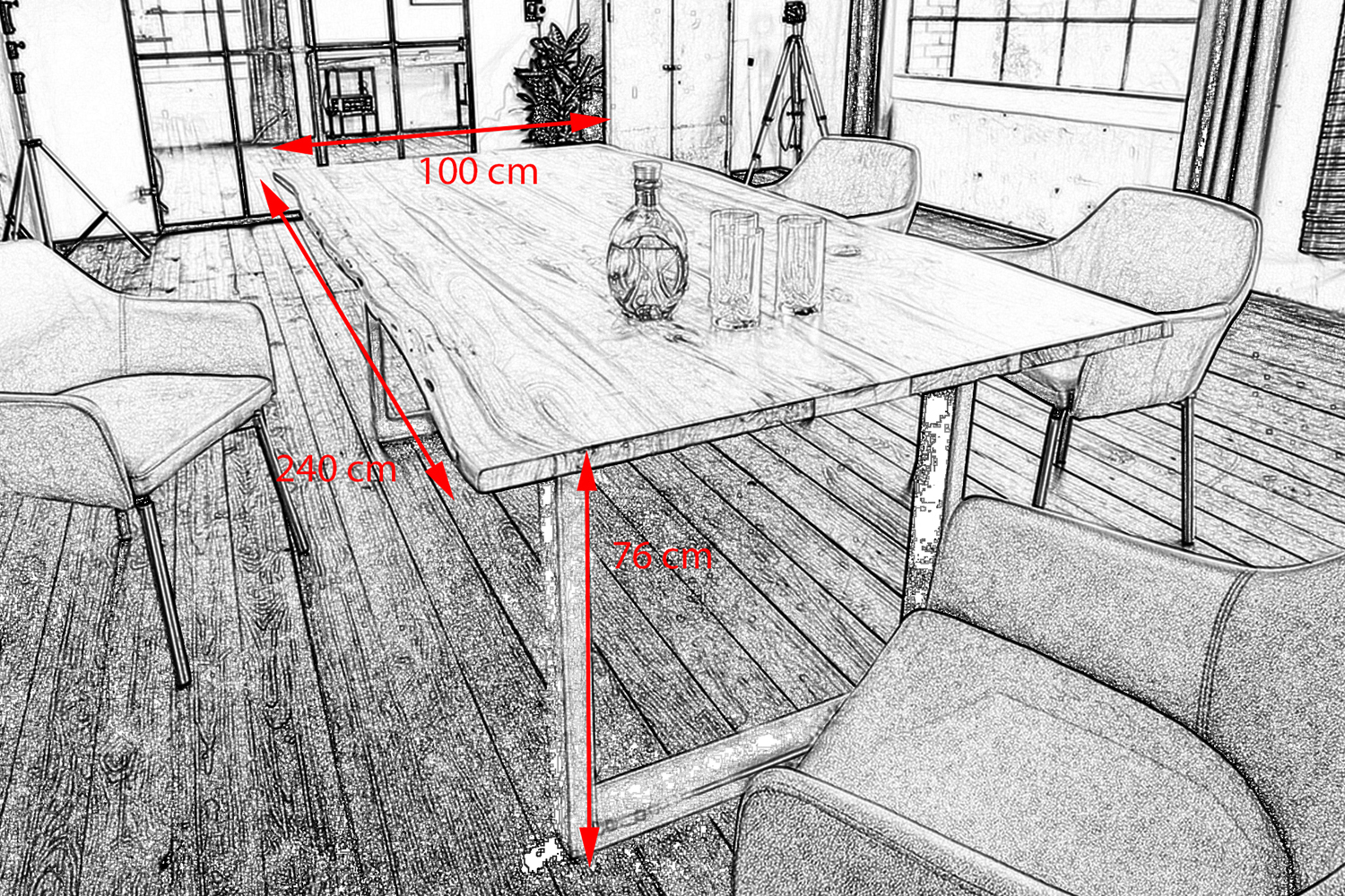 Bei diesem Baumkantentisch handelt es sich um ein Naturprodukt. Das macht ihn zu einem Unikat, jeder Tisch ist einzigartig. Maßabweichungen, Astlöcher und Risse sowie kleinere Unebenheiten sind warentypisch und kein Reklamationsgrund. Vorhandene Risse werden noch in der Herstellung mit Stücken der gleichen Holzart ausgefüllt. Daraus resultierende farbliche Abweichungen stellen ebenfalls keinen Reklamationsgrund dar.