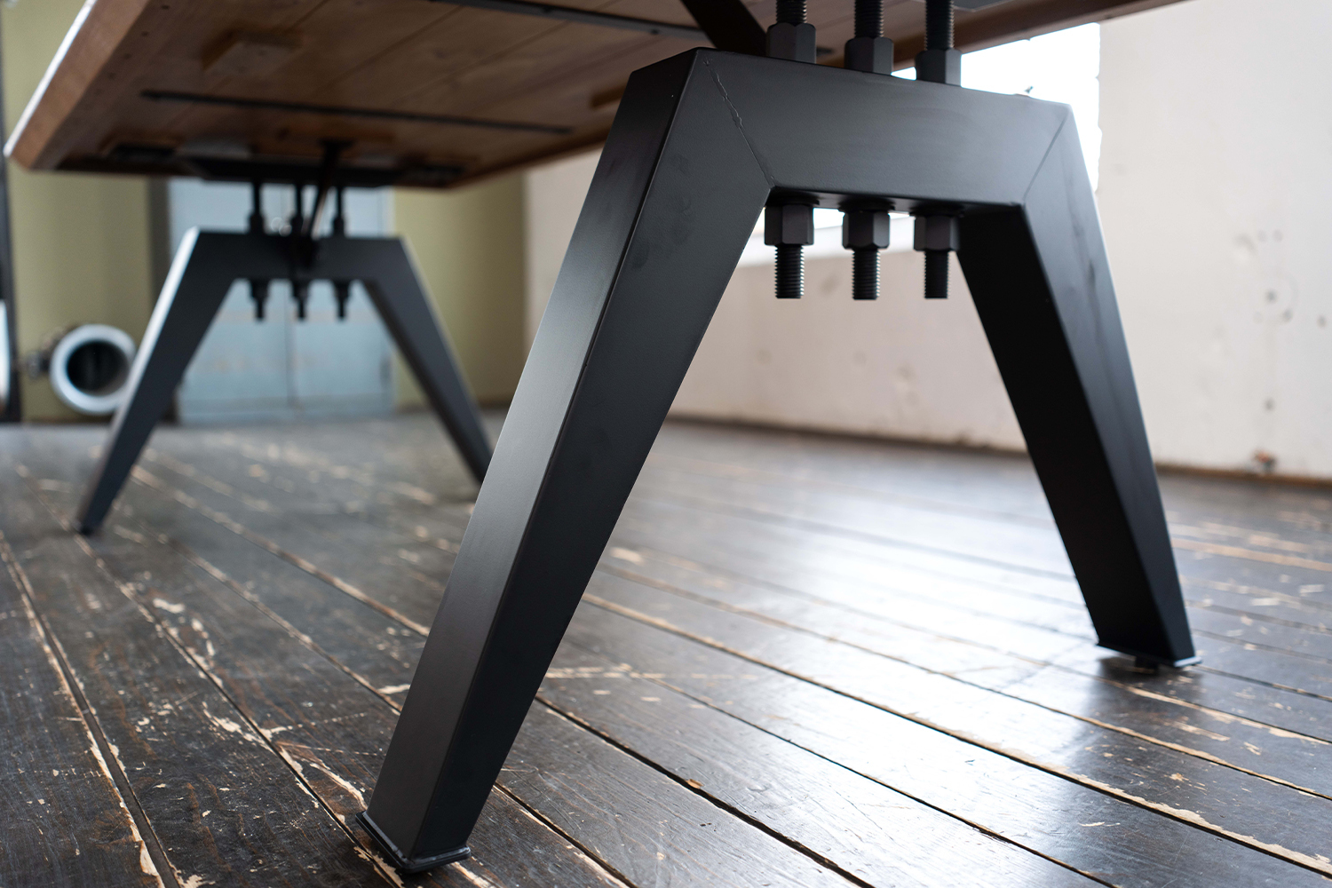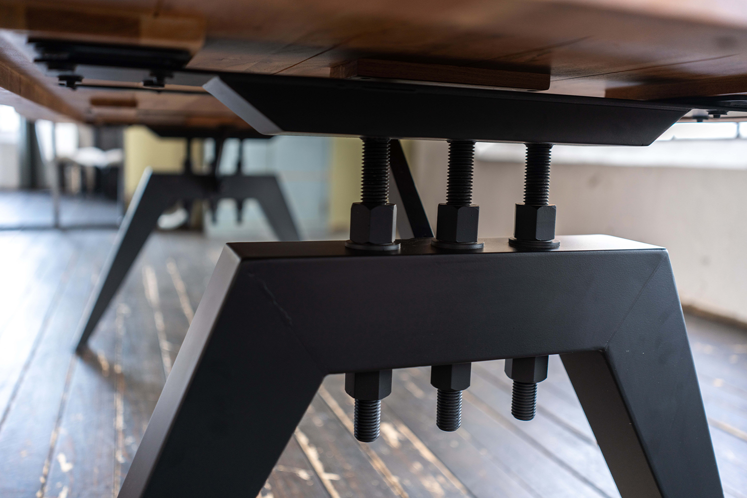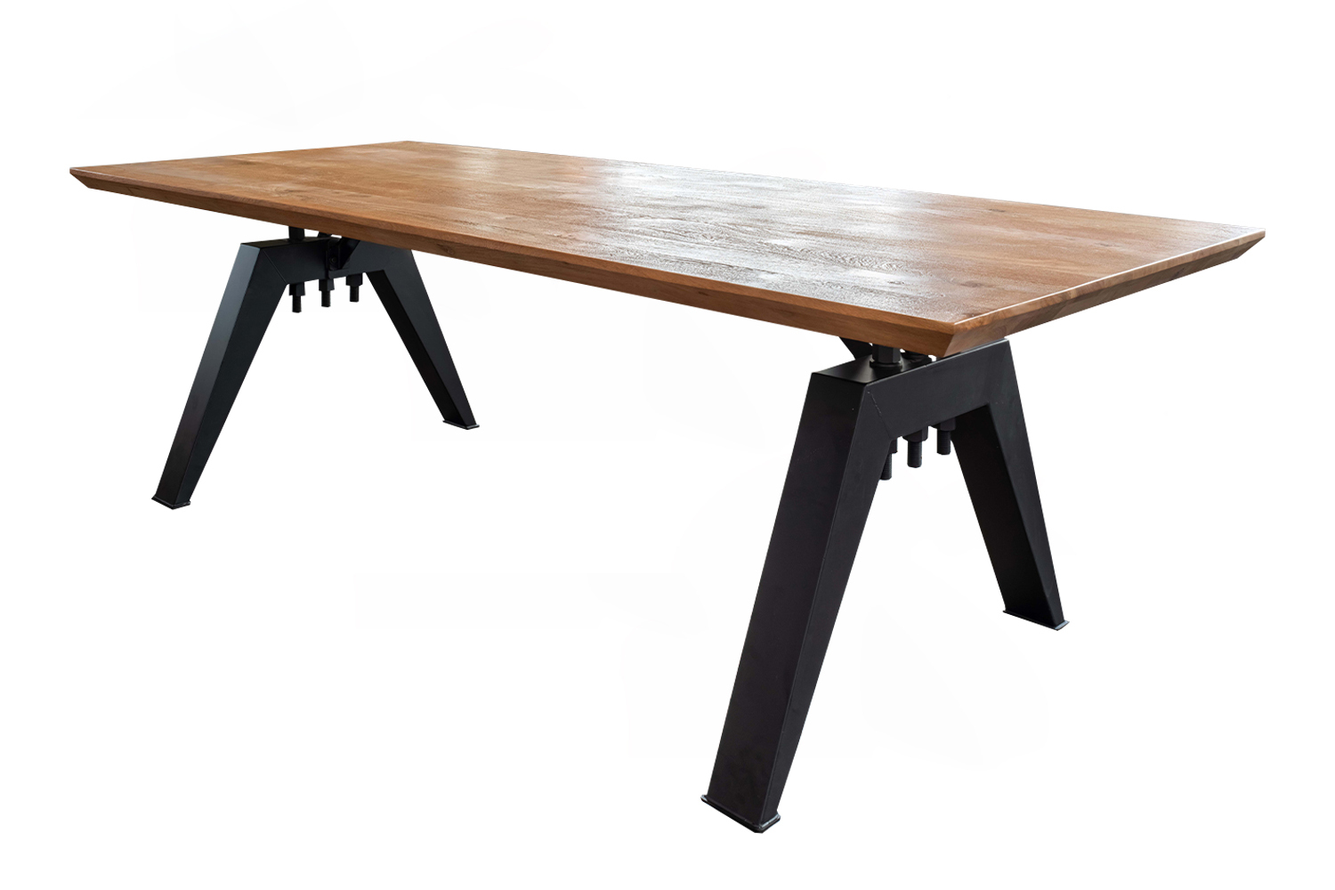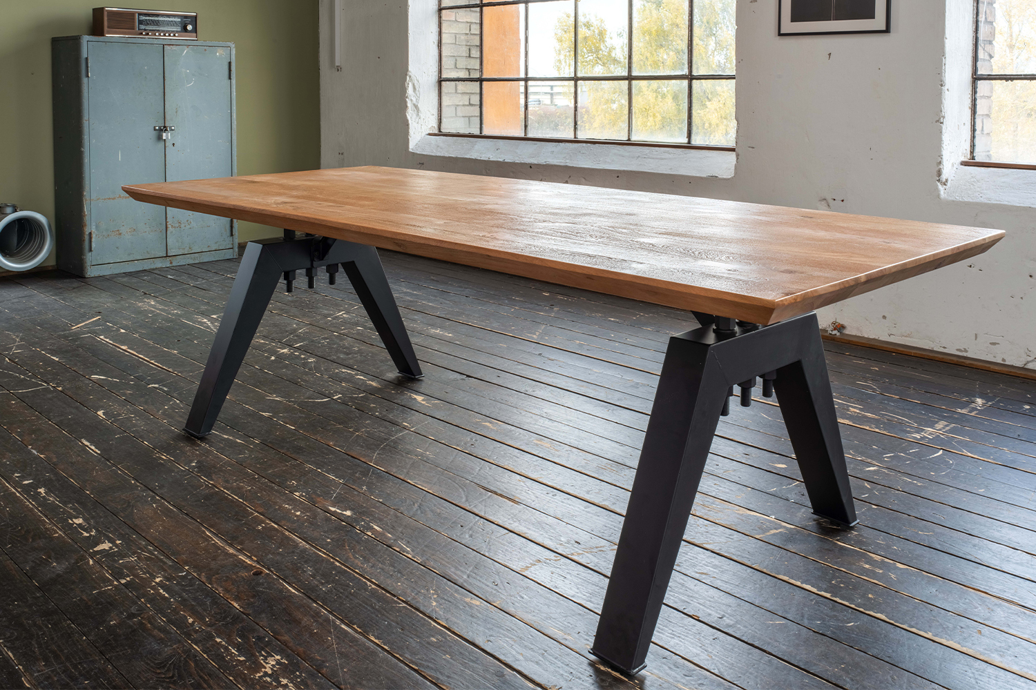 Das rustikal geschweißte, schwarz lackierte Untergestell im Industriedesign verleiht dem Tisch eine moderne, industrielle Note. Diese gelungene Kombination aus natürlichem Holz und robustem Metall macht den Tisch zu einem Design-Highlight in Ihrem Esszimmer.