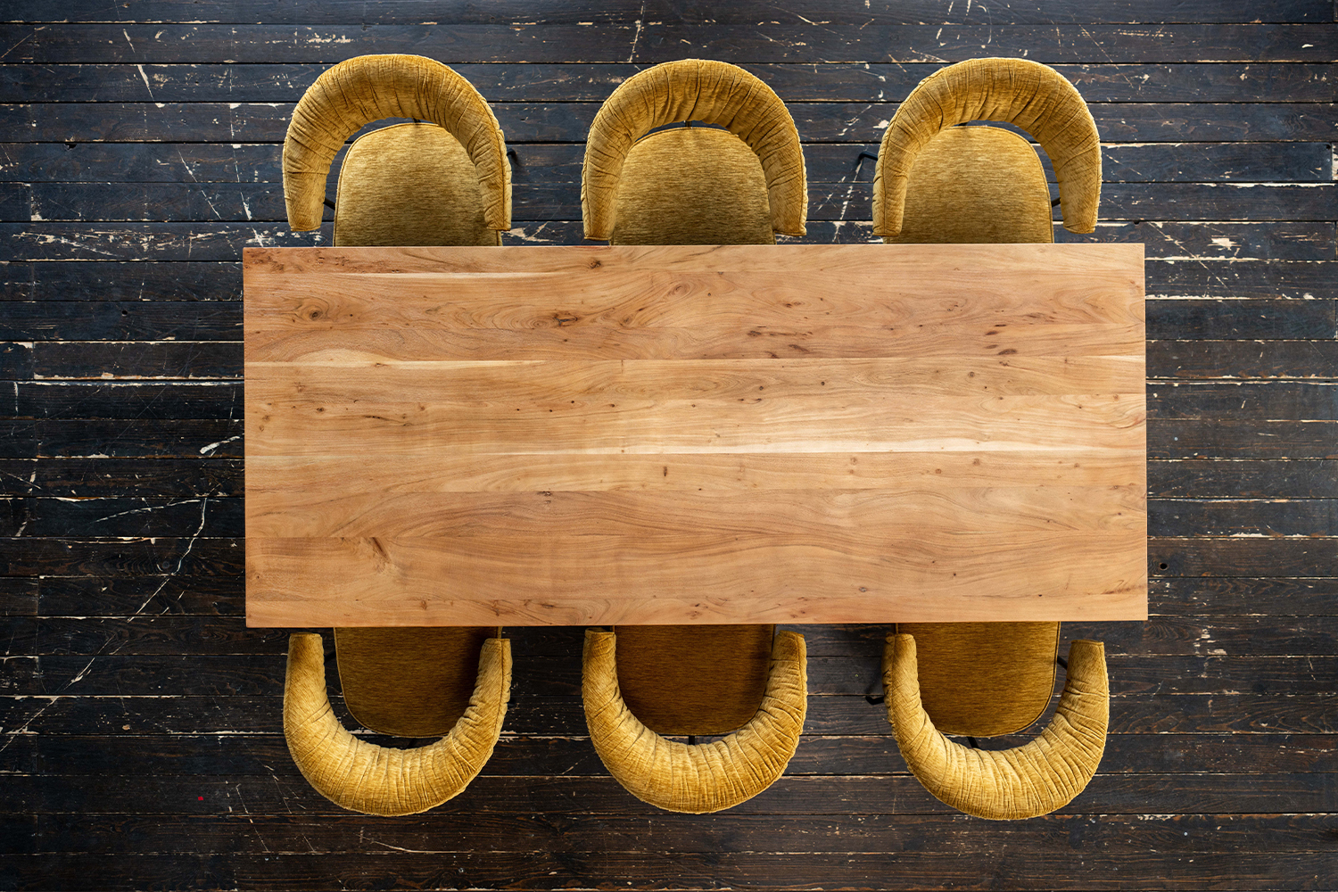 Erhältlich in den Längen 200 cm, 220 cm, 240 cm, 260 cm, 280 cm und 300 cm, bietet der Tisch ausreichend Platz für gemeinsame Mahlzeiten oder gesellige Abende. Der Esstisch REY ist die perfekte Wahl für alle, die modernes Design und hochwertige Verarbeitung zu schätzen wissen. Ein Statement-Stück für jeden Wohn- und Essbereich!