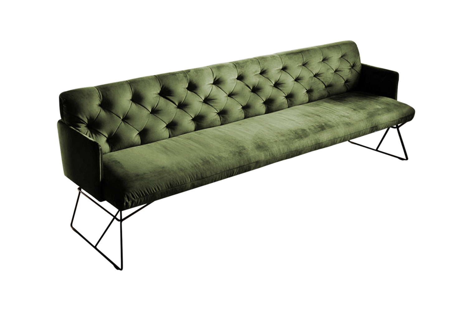 Die KAWOLA Esszimmerbank CHARME in der Farbe Velvet Oliv bringt Vintage-Feeling in jeden Raum. Dank des minimalistischen Designs eignet sich die bequeme Polsterbank CHARME für jedes Heim und lädt ein zu gemeinsamen Spieleabenden mit Freunden oder Familie. Die Bank zeichnet sich durch Ihre legere Polsterung und den damit verbundenen hohen Sitzkomfort aus. Des Weiteren bringt die Rückenlehne mit ihrem Chesterfield-Stil den gewünschten Old-School-Look in ihr Wohnzimmer. Durch den legeren Sitzaufbau ist eine modellbedingte und gestalterisch gewünschte Wellenbildung warentypisch und unterstreicht den gemütlichen Faktor der Sitzbank. Die behagliche Polsterung wird durch den samtigen Velvet-Bezug noch einmal zusätzlich unterstrichen, sodass auch die Haptik der Bank gemütlich und kuschelig erscheint. Da CHARME rundum mit Stoff bezogen ist, kann die komfortable Bank auch frei in den Raum gestellt werden. Die Polsterbank fügt sich durch ihre Drahtfüße und dem samtigen Polsterbezug passend in Ihr Zuhause ein. Auf 166cm Länge finden bis zu vier Personen Platz, die uneingeschränkten Sitzkomfort genießen können. Durch ihre Optik eignet sich die Esszimmerbank hervorragend als Ergänzung zu den in unserem Sortiment befindlichen ZAJA-Esszimmerstühlen.Produktdetails