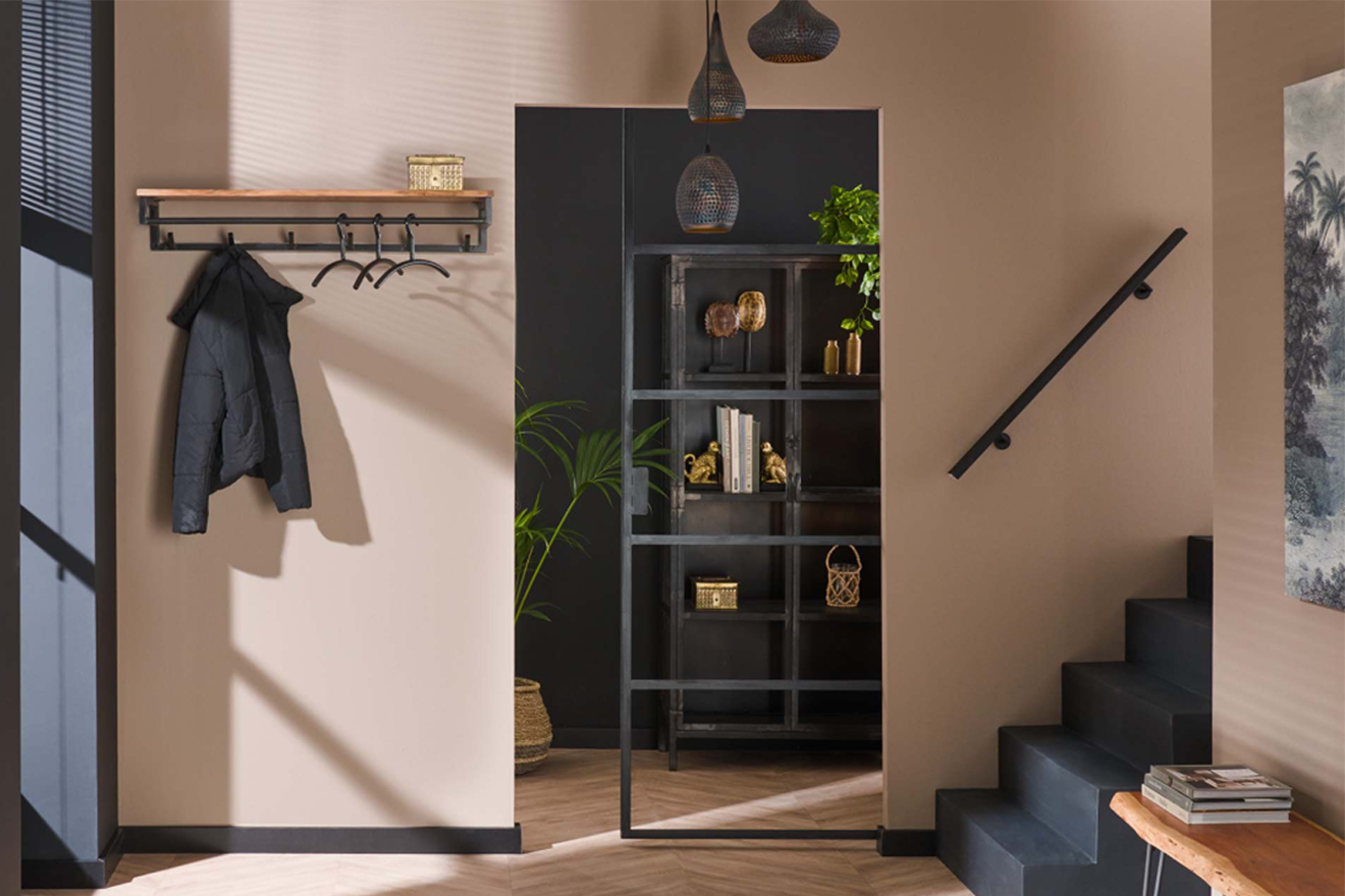Moderne Wandgarderobe im Industrial-Look