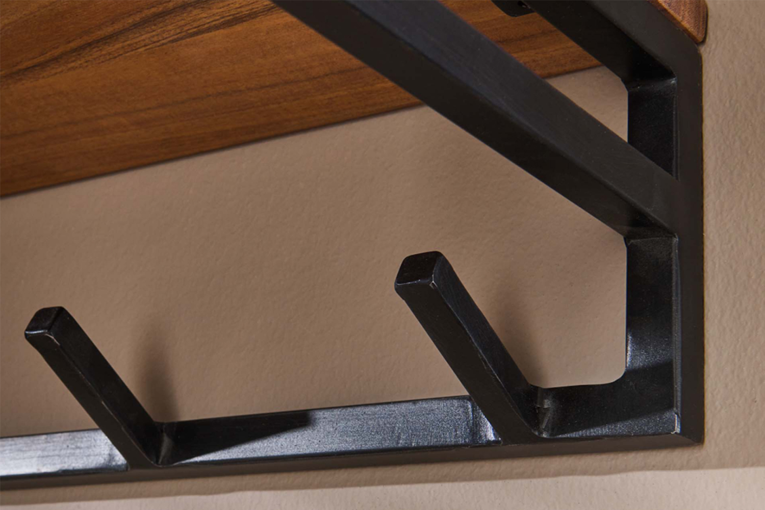 Produktinformationen "KAWOLA Garderobe ELIARA Akazie Metall Hutablage 6 Haken schwarz"