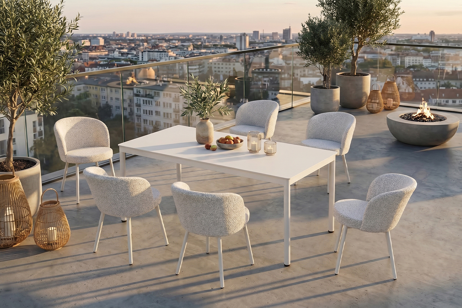 • Großzügige Essgruppe für moderne Outdoor-Bereiche