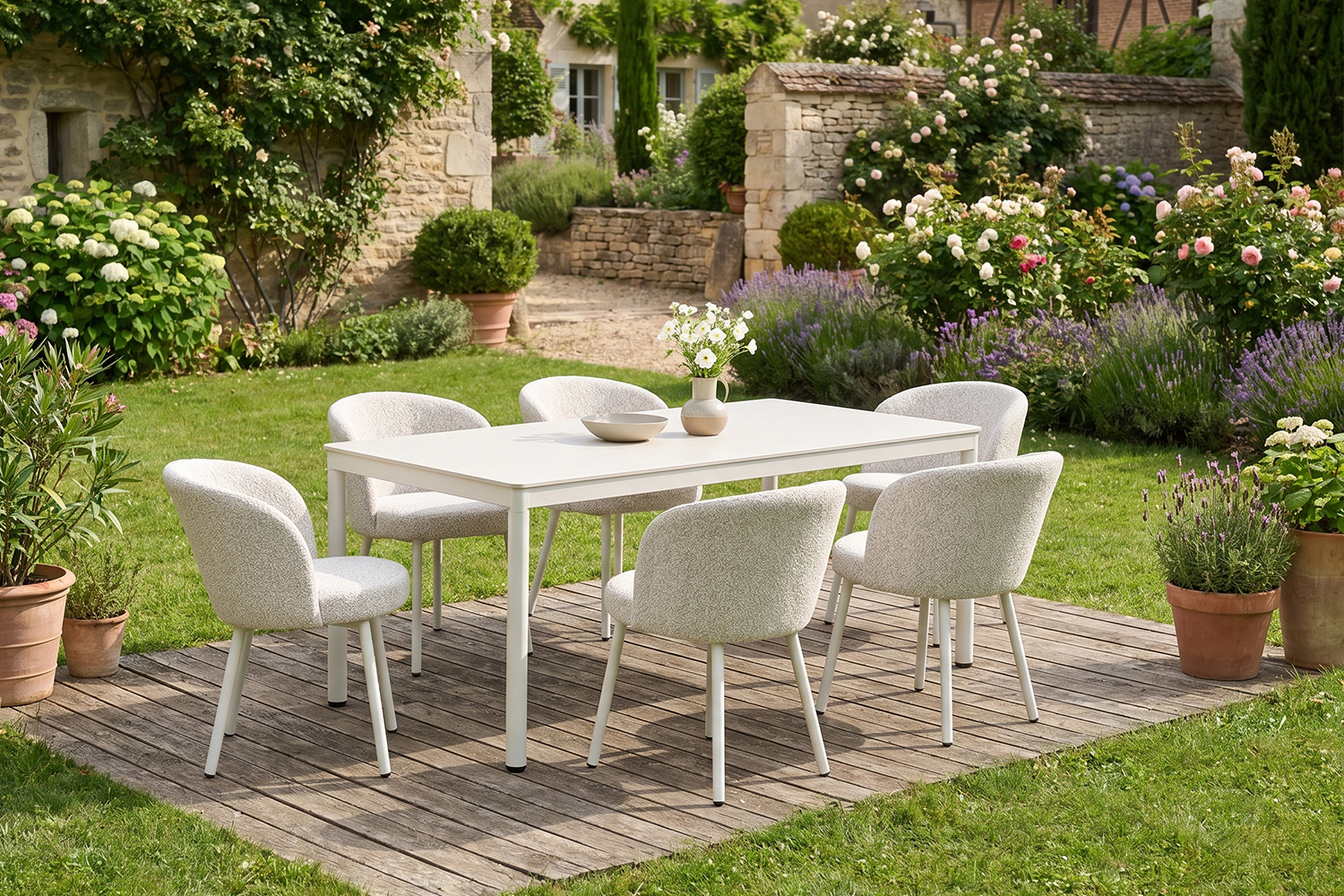• 7-teiliges Outdoor-Set, bestehend aus einem Tisch und 6 Stühlen