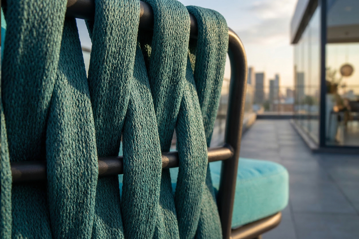 • 6 Komfortstühle mit durchgehender Arm- und Rückenlehne aus Rope
