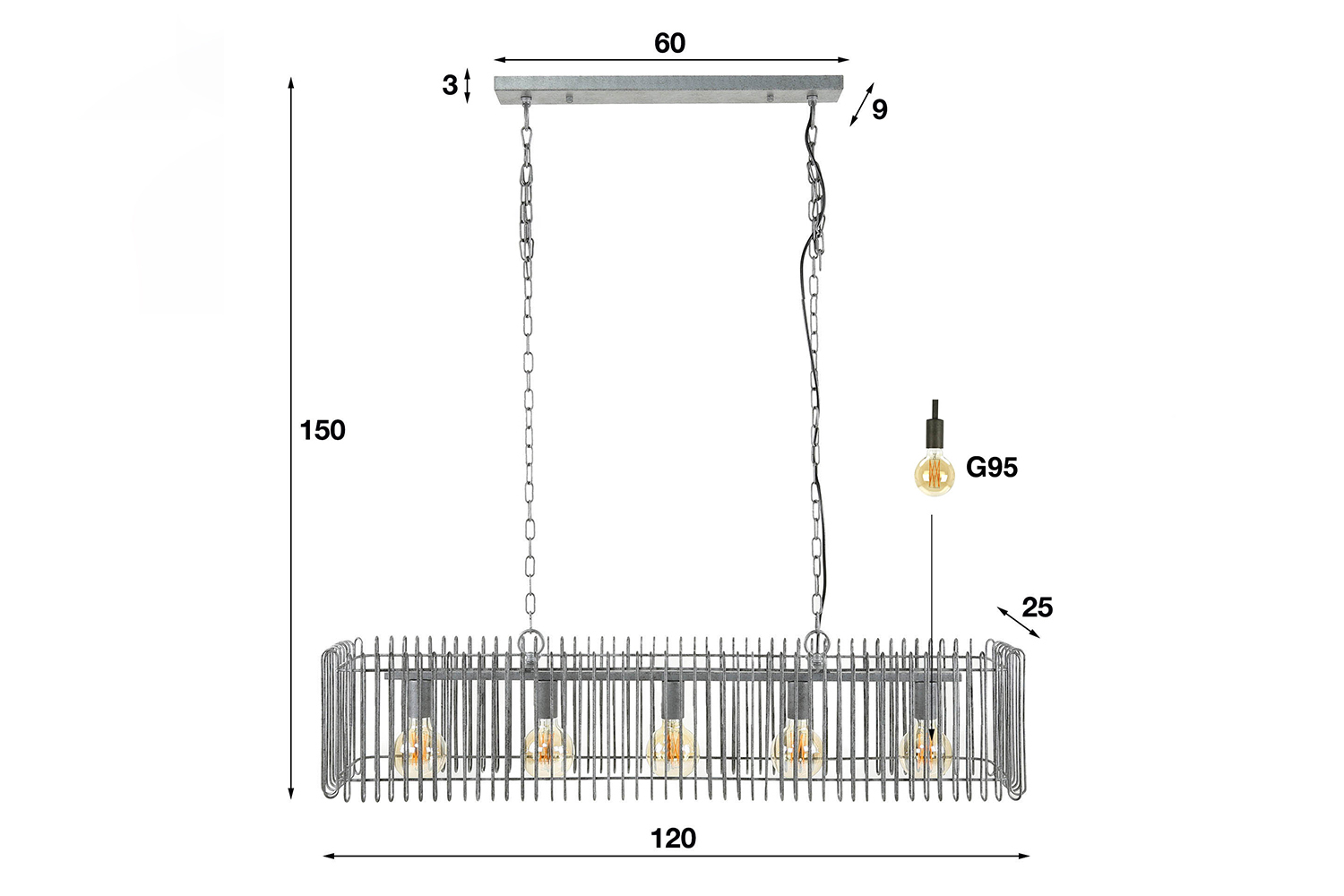 Produktinformationen "KAWOLA Hängeleuchte LORCA Hängelampe 5-flammig Metall silber"