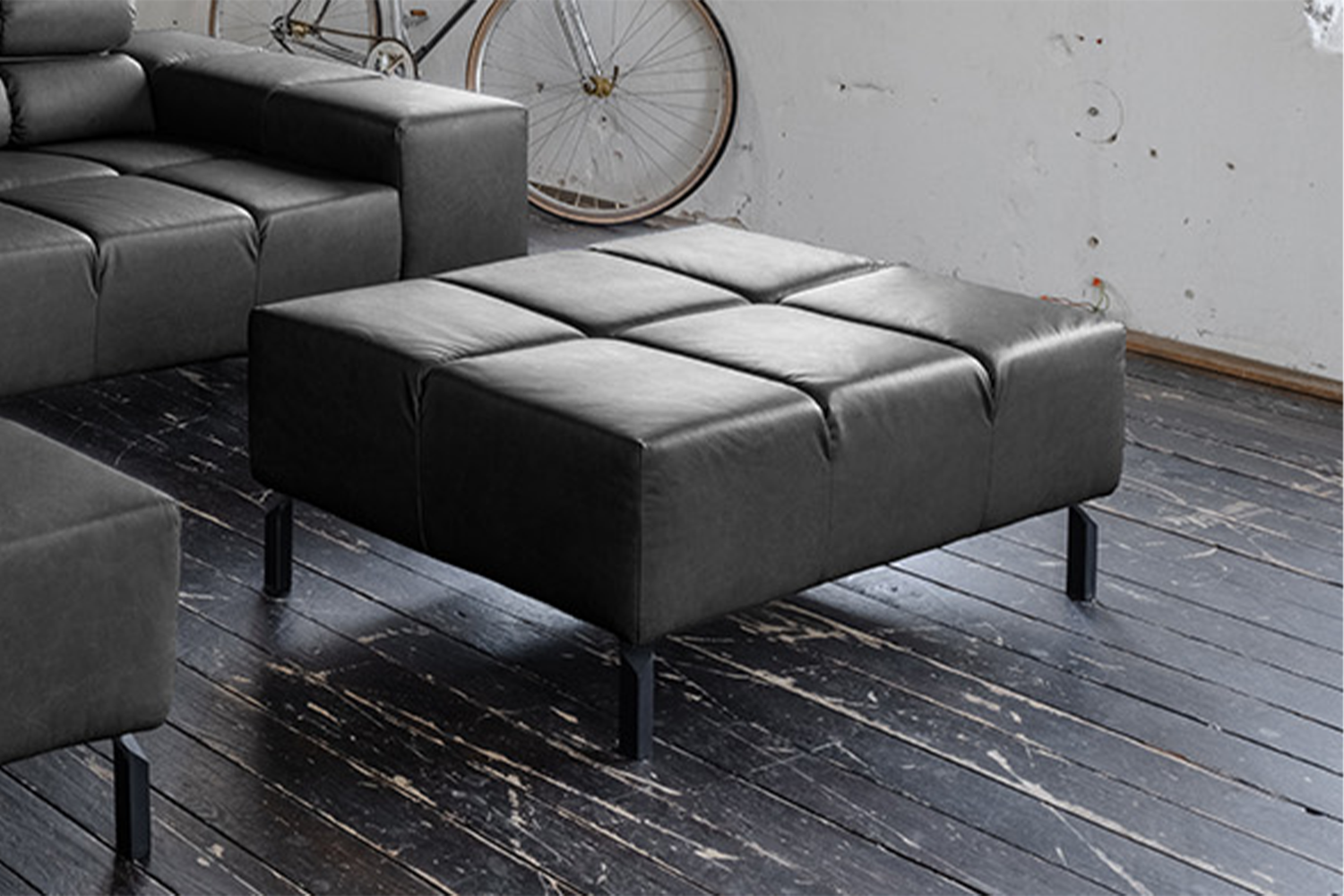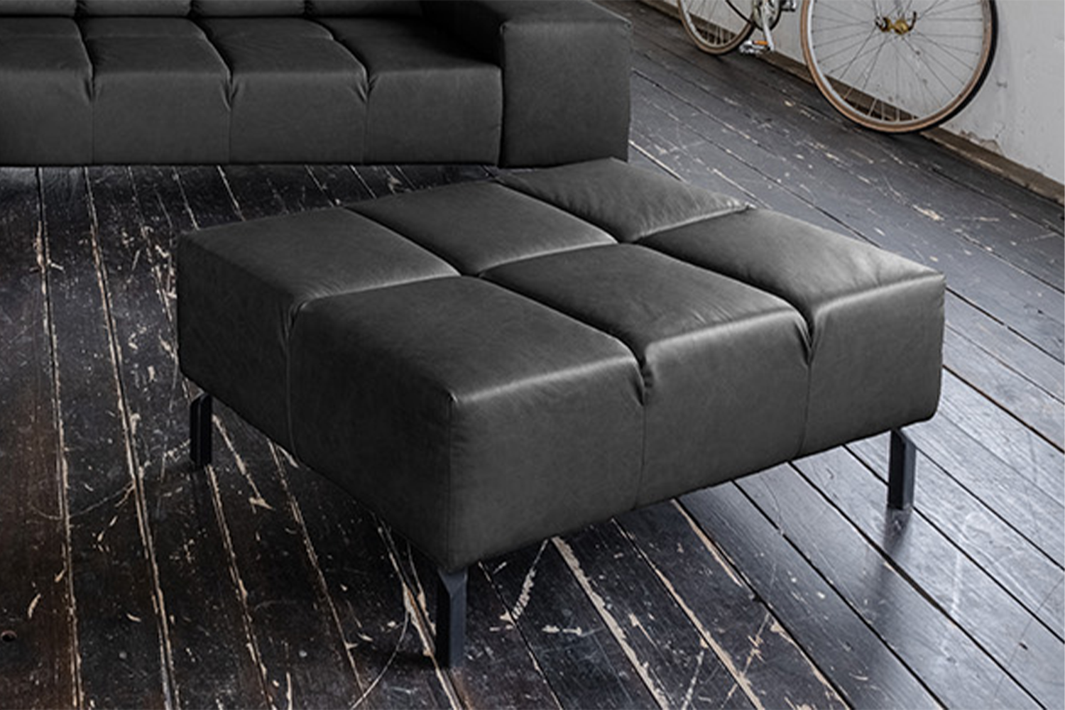 Produktinformationen "KAWOLA Polsterhocker NELSON Hockerbank Leder schwarz"