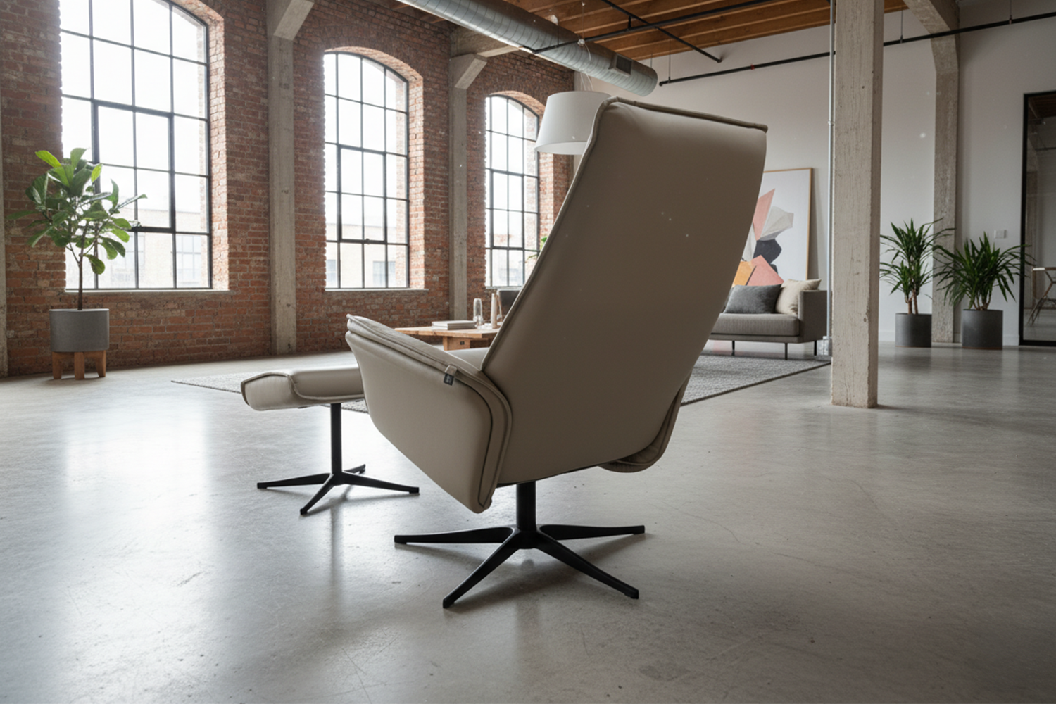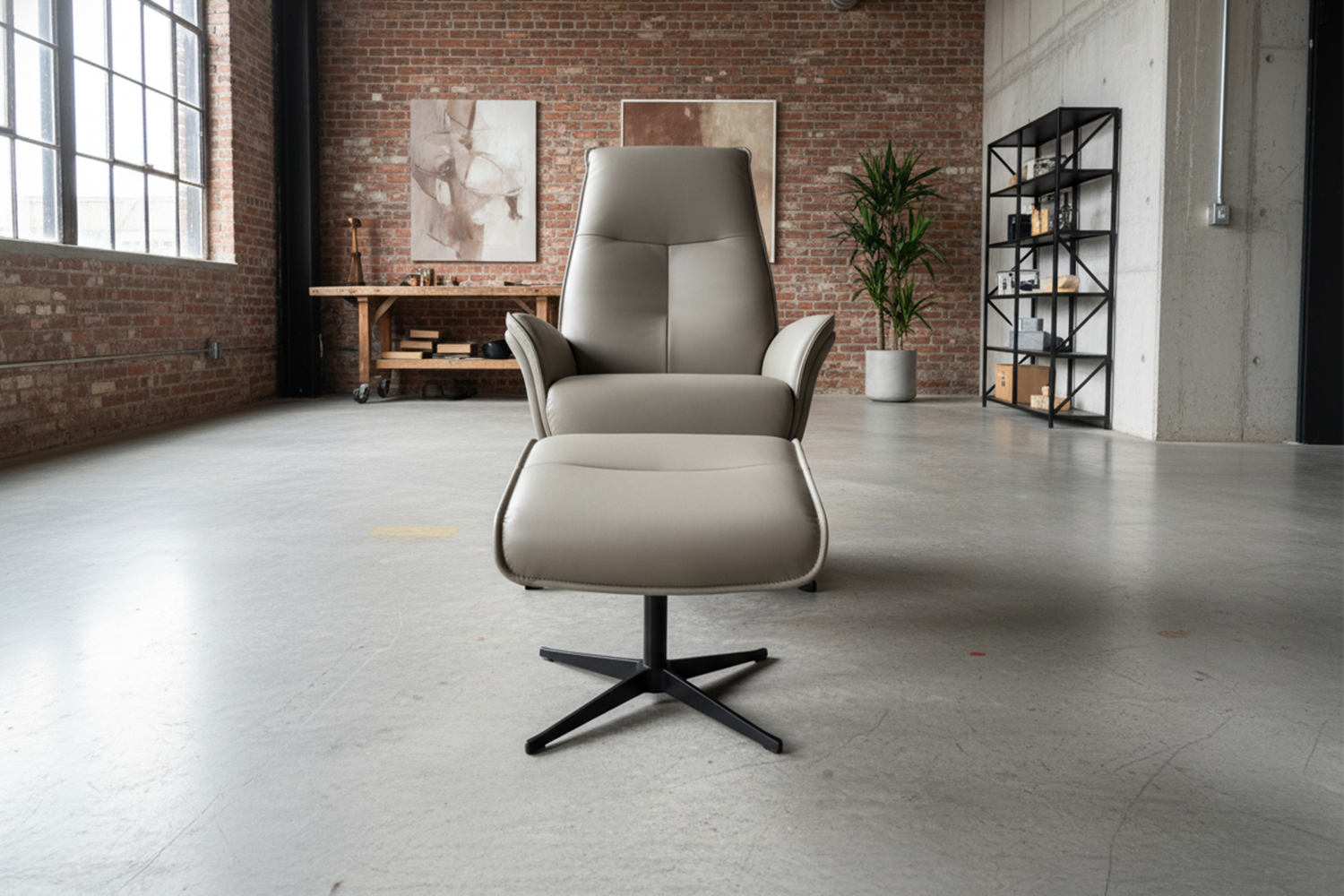 Mit der integrierten Relaxfunktion können Sie sich einfach zurücklehnen und mühelos Ihre persönliche Wohlfühlposition finden. Die drehbare Sitzfläche macht den Sessel flexibel, sodass Sie sich bequem orientieren können, ohne aufzustehen. Die Kopfstütze liefert angenehme Unterstützung bei längeren Entspannungsmomenten, und der passende Fußhocker rundet das Komforterlebnis perfekt ab.