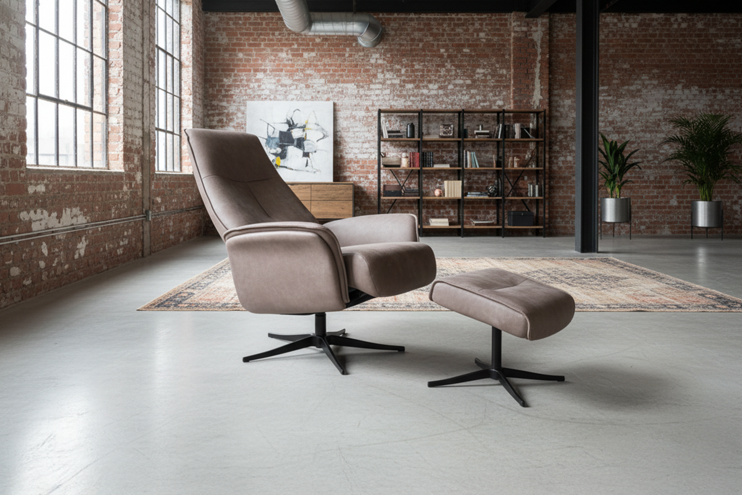 Das silberfarbene Aluminiumgestell sorgt nicht nur für Stabilität, sondern setzt auch einen modernen Akzent. Mit der integrierten Relaxfunktion können Sie sich einfach zurücklehnen und mühelos Ihre persönliche Wohlfühlposition finden. Die drehbare Sitzfläche macht den Sessel flexibel, sodass Sie sich bequem orientieren können, ohne aufzustehen. Die Kopfstütze liefert angenehme Unterstützung bei längeren Entspannungsmomenten, und der passende Fußhocker rundet das Komforterlebnis perfekt ab.