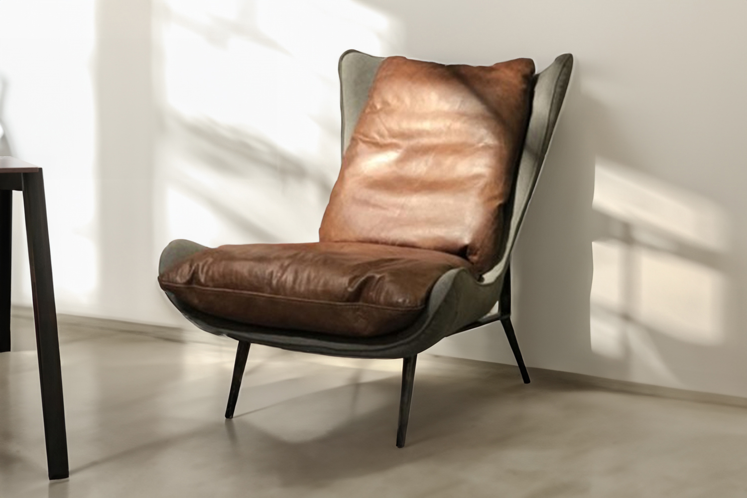 Sessel ERIO ist die perfekte Ergänzung für jeden Wohn- oder auch Wartebereich. Das Sitzpolster ist mit hochwertigem Vintage-Leder in braun bezogen, einen schönen Kontrast dazu bildet die mit Stoff bezogene Rückseite der Sitzschale. Das Gestell ist filigran gehalten und aus Metall gefertigt. Der Mix dieser verschiedenen Materialien komplettiert den besonderen Industrial-Look des Sitzmöbels. Dank der fehlenden Armlehnen lässt sich der Sessel wunderbar in Ihre Räumlichkeiten integrieren ohne gefahrzulaufen dass ihre Einrichtung zu wuchtig wirkt. Die Form des Sessel gibt ihnen außerdem die Möglichkeit sich in verschiedenen Positionen auf ihm wiederzufinden Vintage-Leder ist im Griff sehr warm und weich, zudem besitzt es vollständige Atmungsaktivität. Die Offenporigkeit macht beim Berühren des Leders auch einen Temperaturausgleich möglich, sodass sich das Leder schön warm anfühlt. Durch das Aufbringen einer Wachsschicht oder eines sogenannten Effektfinish wird dem Leder ein antiker Look verliehen. Farbunterschiede und sichtbare Naturmerkmale wie z.B. Mückenstiche und Narben zeigen die Echtheit des Leders. Aufgrund der Offenporigkeit entwickelt dieses Leder beim Gebrauch seinen individuellen Charakter.Produktdetails