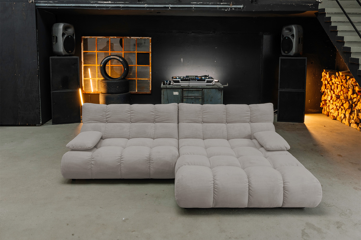 Das Ecksofa lädt mit seiner tiefen Sitzfläche und der gemütlichen Polsterung zum Entspannen ein. Die Hockerbank ergänzt das Sofa flexibel als Sitzgelegenheit, Fußhocker oder Ablagefläche. Der Drehsessel sorgt mit seiner 360°-Funktion für Bewegungsfreiheit und bietet dabei eine komfortable Sitzfläche.