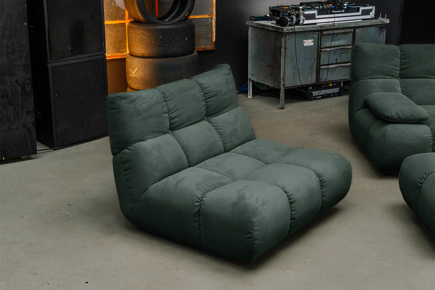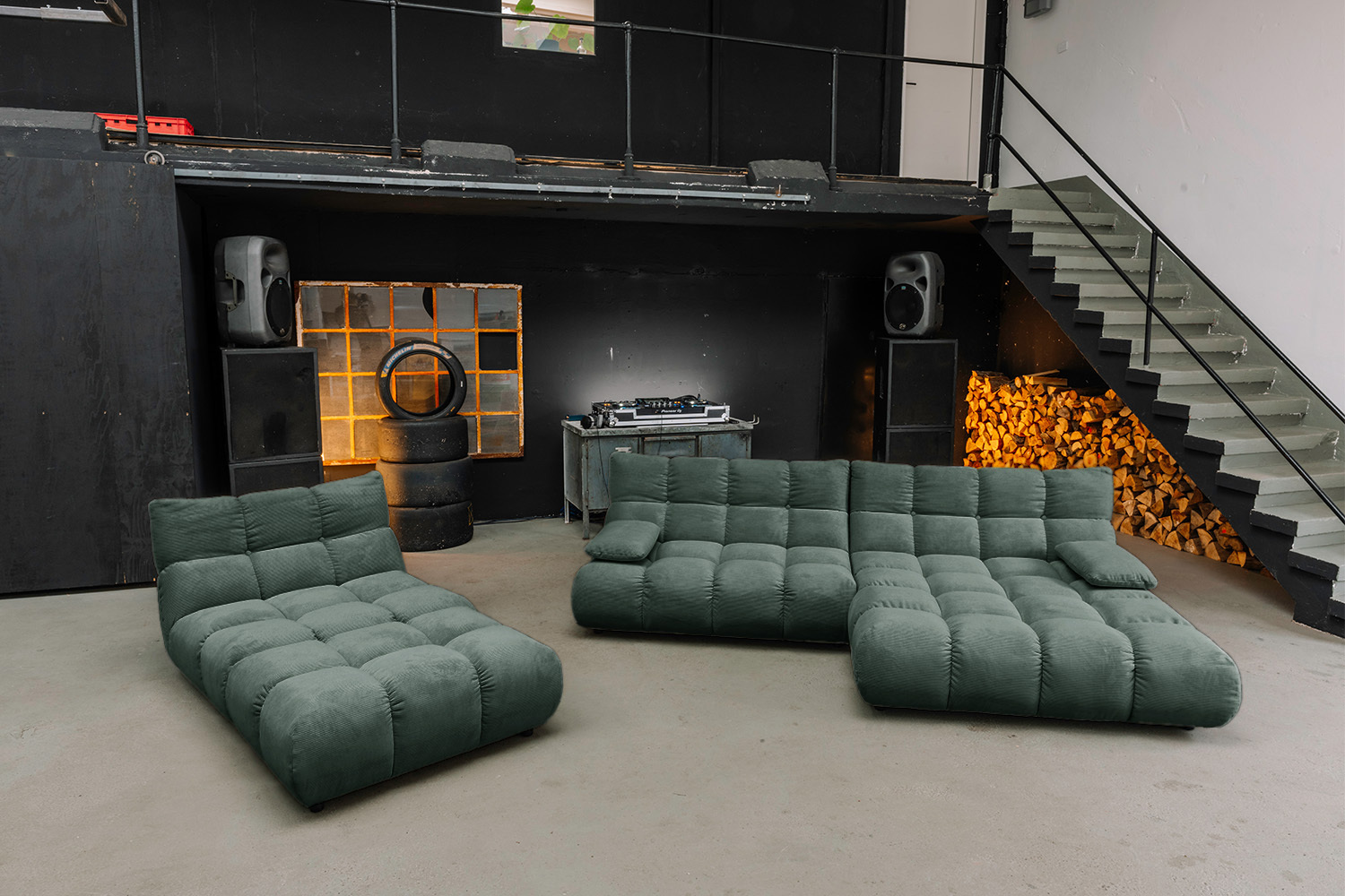 Der Bezug aus edlem Velvet verleiht der Sitzgruppe eine elegante Note. Die samtweiche Oberfläche und der feine Glanz machen jedes Möbelstück zum Blickfang und schaffen ein luxuriöses Ambiente.
