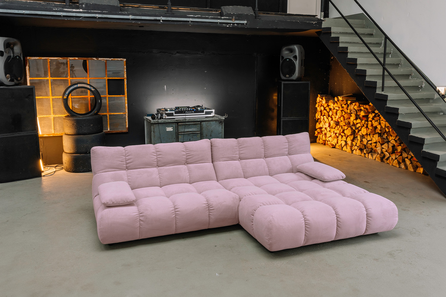 Das Ecksofa lädt mit seiner tiefen Sitzfläche und der gemütlichen Polsterung zum Entspannen ein. Die Hockerbank ergänzt das Sofa flexibel als Sitzgelegenheit, Fußhocker oder Ablagefläche. Der Drehsessel sorgt mit seiner 360°-Funktion für Bewegungsfreiheit und bietet dabei eine komfortable Sitzfläche.