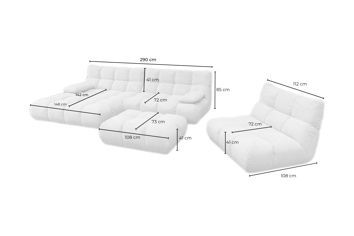 - Lieferumfang: 1 Sofa, 1 Sessel, 1 Hocker