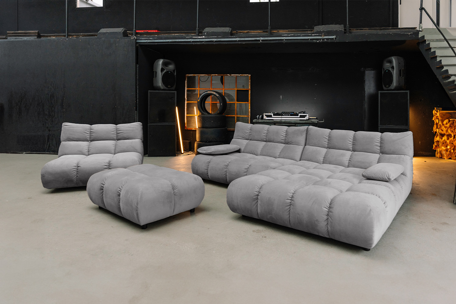 Der Bezug aus edlem Velvet verleiht der Sitzgruppe eine elegante Note. Die samtweiche Oberfläche und der feine Glanz machen jedes Möbelstück zum Blickfang und schaffen ein luxuriöses Ambiente.