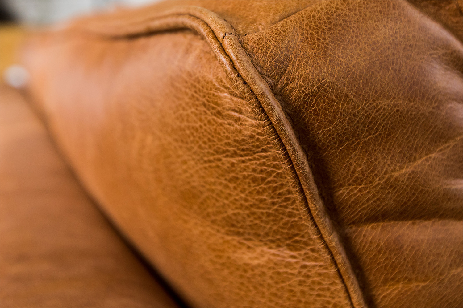 Das hochwertige, offenporige Rindsleder überzeugt durch seine natürliche Ausstrahlung. Da es nur minimal behandelt wird, bleibt die authentische Oberfläche vollständig erhalten – mit all ihren feinen Narben, leichten Falten und individuellen Strukturen. Diese Merkmale sind keine Mängel, sondern Ausdruck der Echtheit und verleihen jedem Bezug seinen ganz eigenen Charakter.
