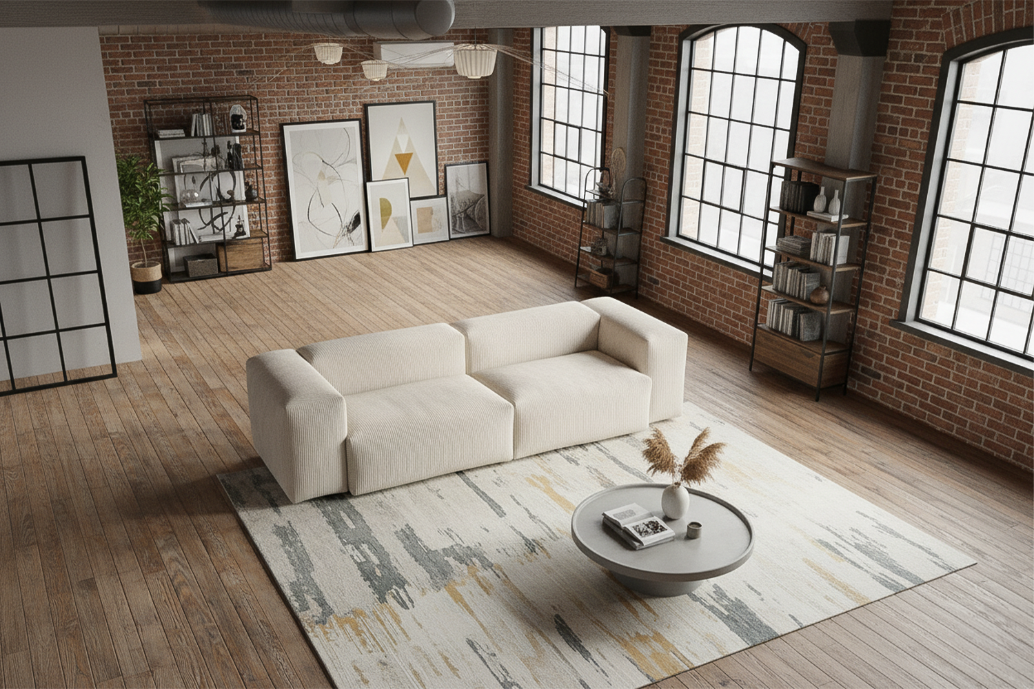 Das 4-Sitzer Sofa KAWOLA CELESTE vereint großzügige Dimensionen mit einem modernen, skulpturalen Design. Mit einer beeindruckenden Breite von 302 cm, einer Tiefe von 114 cm und einer Höhe von 72 cm bietet CELESTE viel Raum für entspannte Stunden. Der weiche Cordbezug verleiht dem Sofa eine besonders einladende Haptik und einen wohnlich-lässigen Charakter. Die feine Struktur des Stoffs sorgt für einen spannenden visuellen Effekt, der das kubische Design harmonisch unterstreicht.