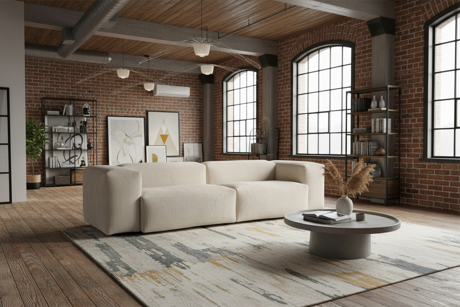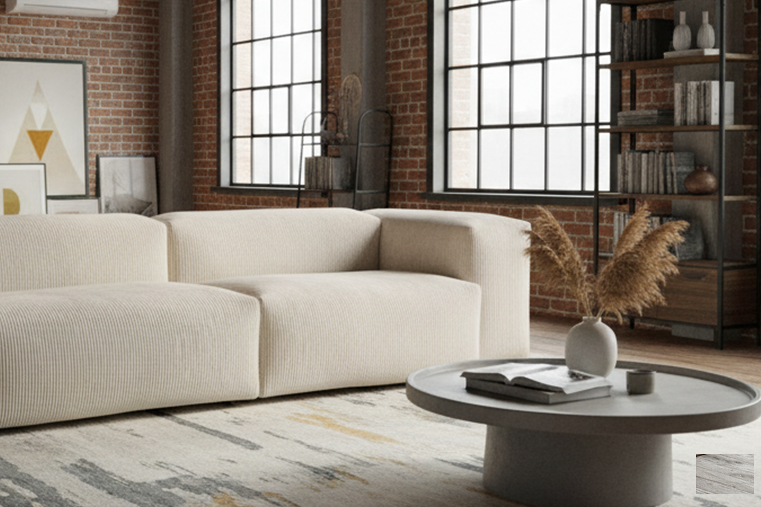 Das 4-Sitzer Sofa KAWOLA CELESTE vereint großzügige Dimensionen mit einem modernen, skulpturalen Design. Mit einer beeindruckenden Breite von 302 cm, einer Tiefe von 114 cm und einer Höhe von 72 cm bietet CELESTE viel Raum für entspannte Stunden. Der weiche Cordbezug verleiht dem Sofa eine besonders einladende Haptik und einen wohnlich-lässigen Charakter. Die feine Struktur des Stoffs sorgt für einen spannenden visuellen Effekt, der das kubische Design harmonisch unterstreicht.