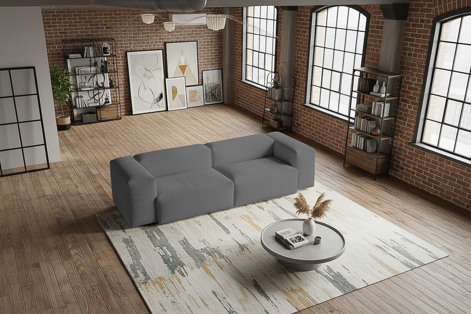 Das 4-Sitzer Sofa KAWOLA CELESTE vereint großzügige Dimensionen mit einem modernen, skulpturalen Design. Mit einer beeindruckenden Breite von 302 cm, einer Tiefe von 114 cm und einer Höhe von 72 cm bietet CELESTE viel Raum für entspannte Stunden. Der weiche Cordbezug verleiht dem Sofa eine besonders einladende Haptik und einen wohnlich-lässigen Charakter. Die feine Struktur des Stoffs sorgt für einen spannenden visuellen Effekt, der das kubische Design harmonisch unterstreicht.