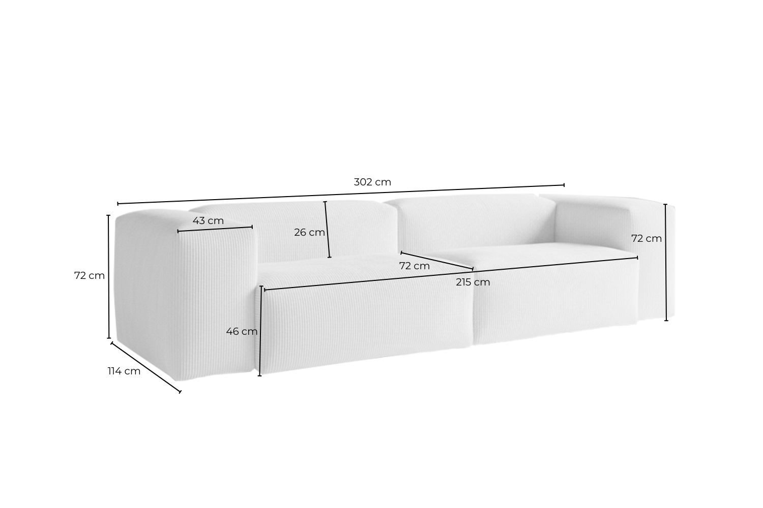 - Sitzbreite: 215 cm