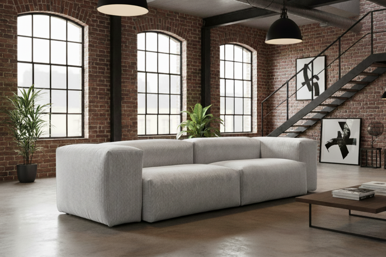 Das 4-Sitzer Sofa KAWOLA CELESTE vereint großzügige Dimensionen mit einem modernen, skulpturalen Design. Mit einer beeindruckenden Breite von 302 cm, einer Tiefe von 114 cm und einer Höhe von 72 cm bietet CELESTE viel Raum für entspannte Stunden. Der weiche Cordbezug verleiht dem Sofa eine besonders einladende Haptik und einen wohnlich-lässigen Charakter. Die feine Struktur des Stoffs sorgt für einen spannenden visuellen Effekt, der das kubische Design harmonisch unterstreicht.