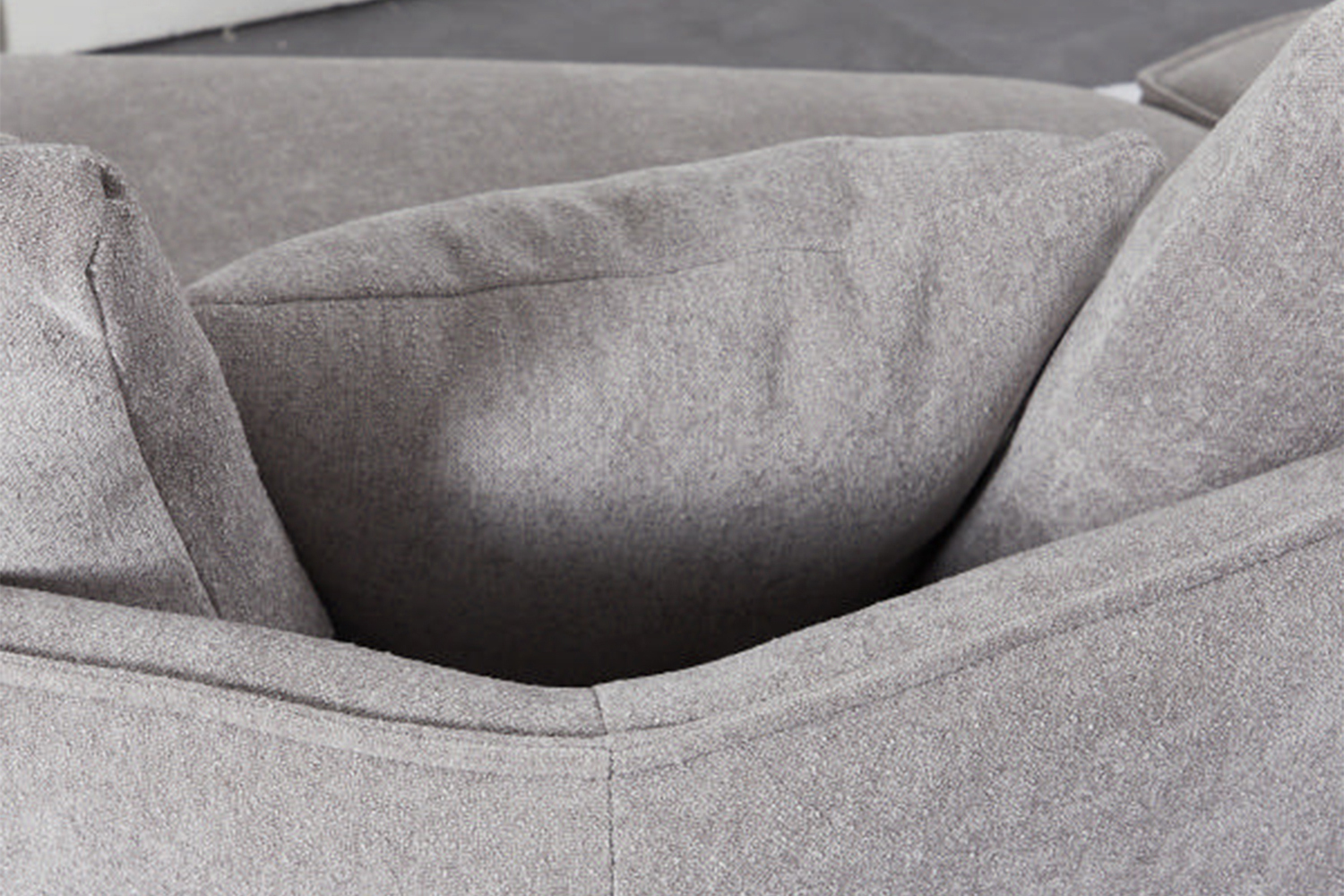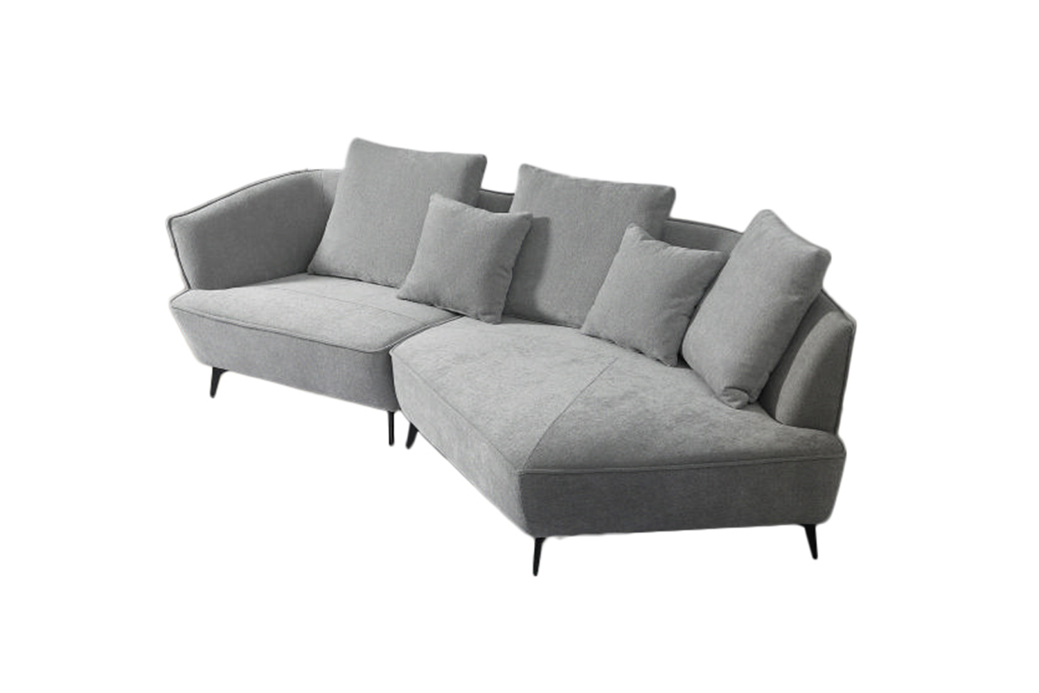 Der Sitzkomfort ist exquisit weich, und das besondere Design setzt GARBO von anderen Sofas ab. Etwa ein Drittel des Sofas verläuft schräg nach vorne, wobei der längere Teil offen und armlehnenfrei an der Seite gestaltet ist – ein Statement in zeitloser Eleganz. Dieses unkonventionelle Detail unterstreicht die Einzigartigkeit des Designs und verleiht Ihrem Wohnraum eine avantgardistische Note.