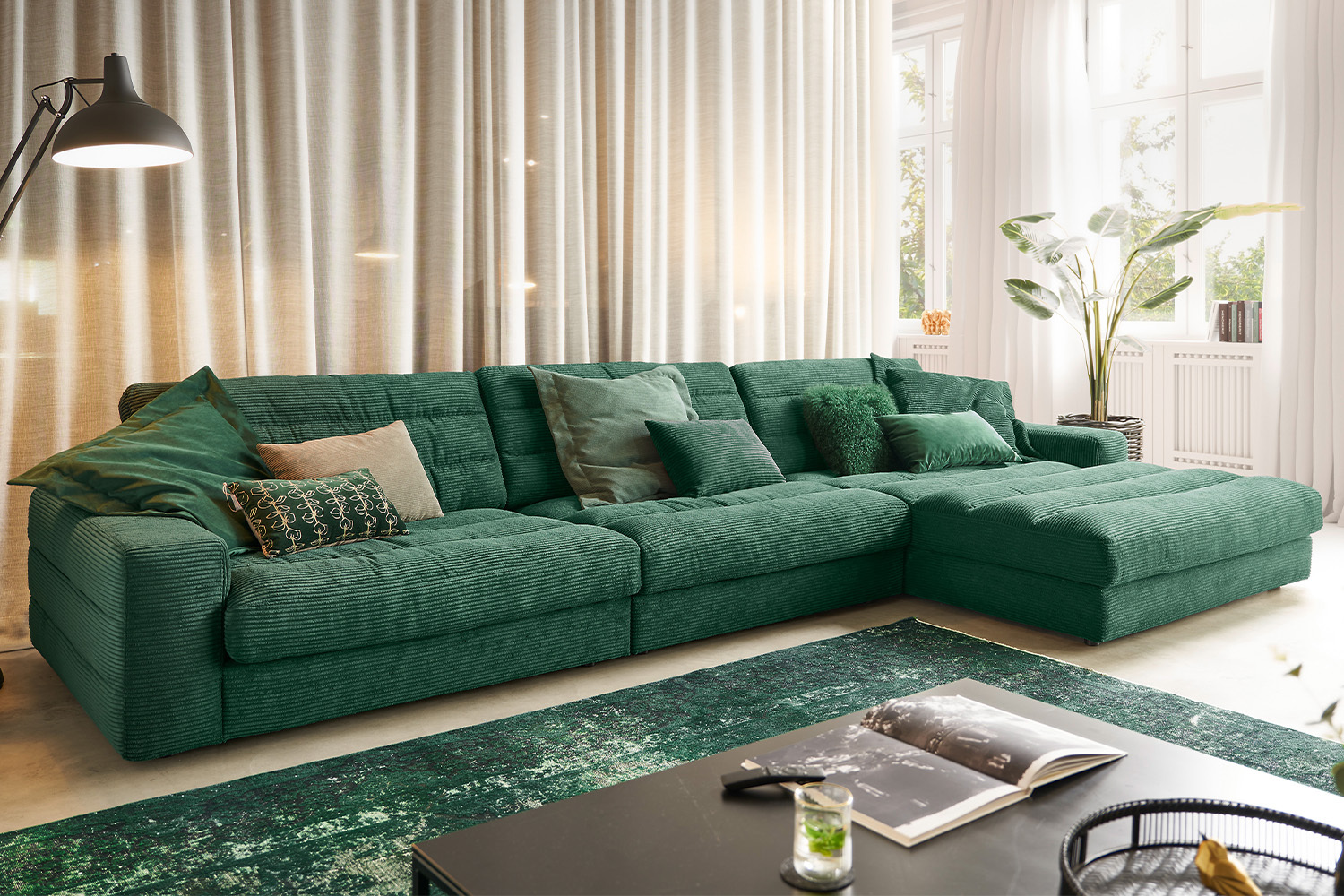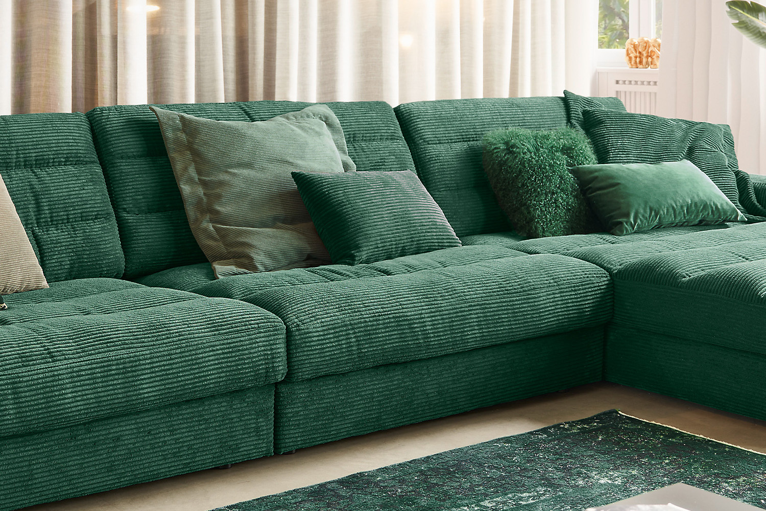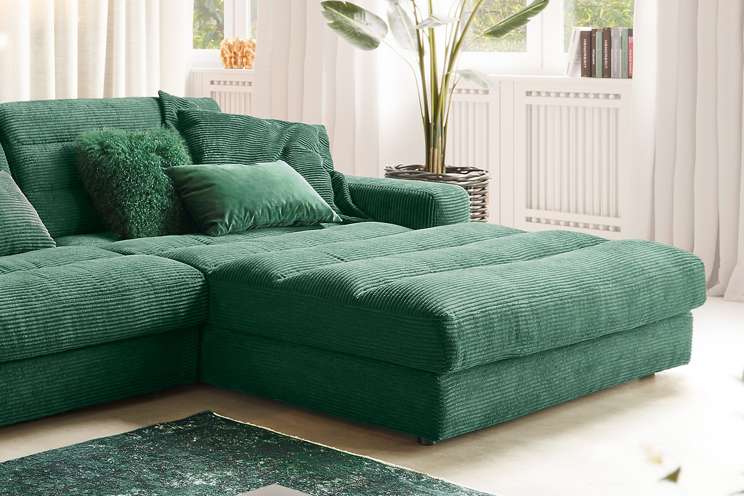Produktinformationen "KAWOLA Sofa LANA XL Ecksofa Cord smaragd"