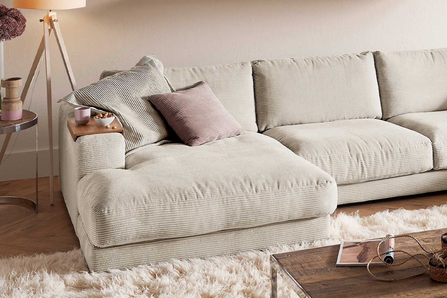 Die KAWOLA Wohnlandschaft MADELINE in U-Form besticht durch ihren hervorragenden Sitzkomfort, der durch die äußerst legere Polsterung zustande kommt und zum Verweilen und Entspannen einlädt. Seine moderne und urbane Form verleihen dem Sofa sein unverwechselbares Aussehen und bieten ausreichend Platz, um gemütliche Abende zu verbringen. Mit seinem zeitlosen Design fügt es sich nahtlos in jede Umgebung ein und macht auch frei im Raum stehend eine gute Figur. Wenn Sie Ihrem Wohnzimmer einen außergewöhnlichen Anstrich verleihen wollen, ist das Sofa MADELINE definitiv das Richtige für Sie!