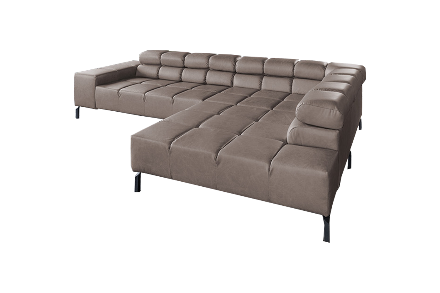 Das KAWOLA Ecksofa NELSON verbindet moderne Designwelten mit zeitloser Eleganz und fügt sich nahtlos in jedes Interieur ein. Der edle Bezug aus pigmentiertem Leder verleiht dem Sofa hochwertige Optik und ein angenehmes Sitzgefühl. Naturmerkmale (z.B. Narben, Insektenstiche), Struktur- und Farbabweichungen sind dabei unvermeidlich und warentypisch. Seine kubische Form und die hohen Metallfüße verleihen dem Sofa eine gewisse Leichtigkeit, die durch die quadratischen Absteppungen noch unterstrichen wird. Die Kopfstützen können ganz nach den individuellen Sitzvorlieben entweder hoch-oder heruntergeklappt werden. Die komplexe, 3-stufige Polsterung garantiert außerdem höchsten Sitzkomfort. Selbstverständlich wurde das Sofa auch auf der Rückseite mit dem hochwertigen Leder bezogen, sodass es auch frei in den Raum gestellt eine gute Figur macht. Egal zu welcher Gelegenheit - auf dem Sofa NELSON findet jeder ein Plätzchen zum Entspannen!Produktdetails