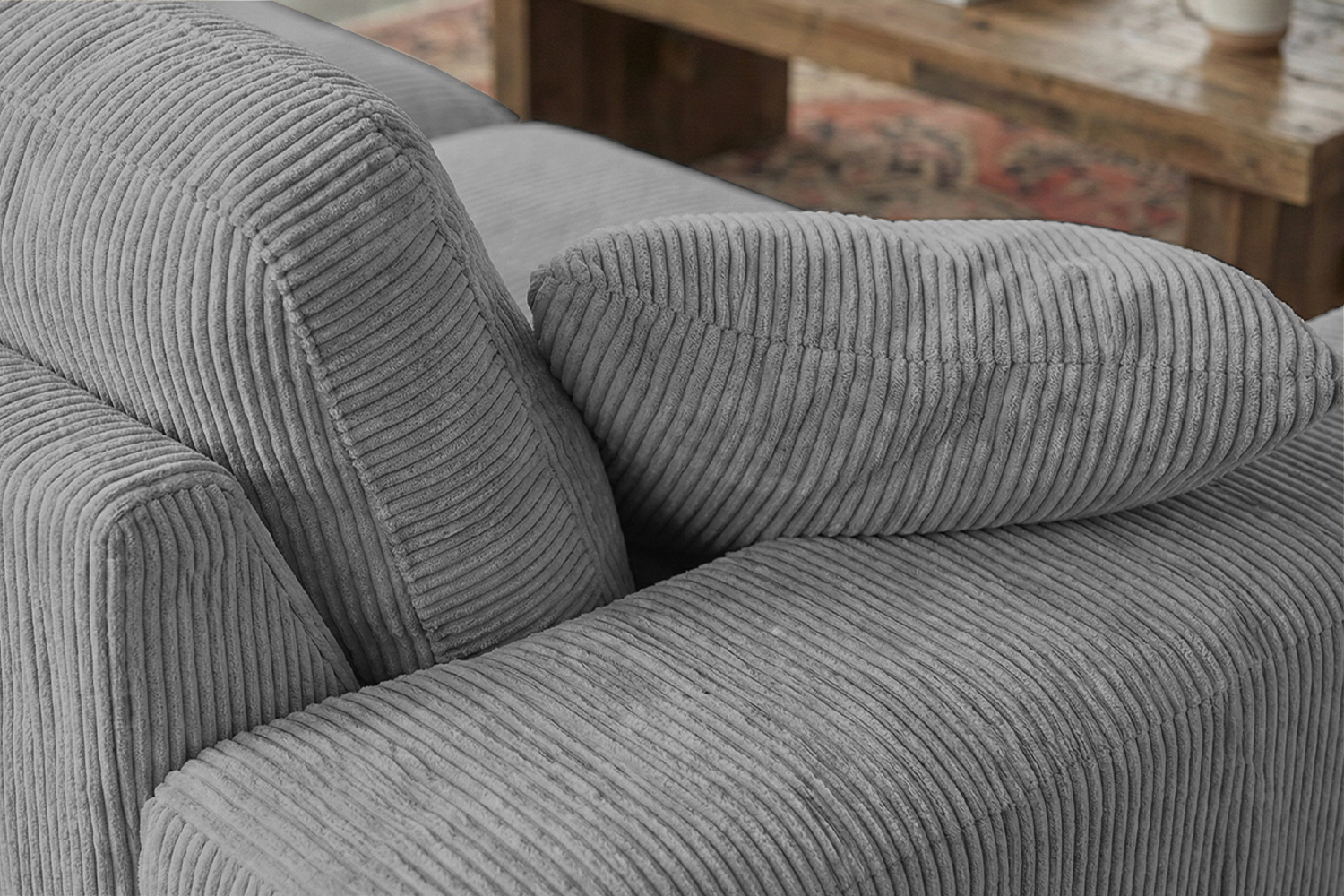 Der hochwertige Rundumbezug aus Cord verleiht dem Sofa eine zeitlose Ästhetik und angenehme Haptik. Der abziehbare Bezug ermöglicht eine einfache Reinigung in der Waschmaschine, um das Sofa frisch und sauber zu halten.