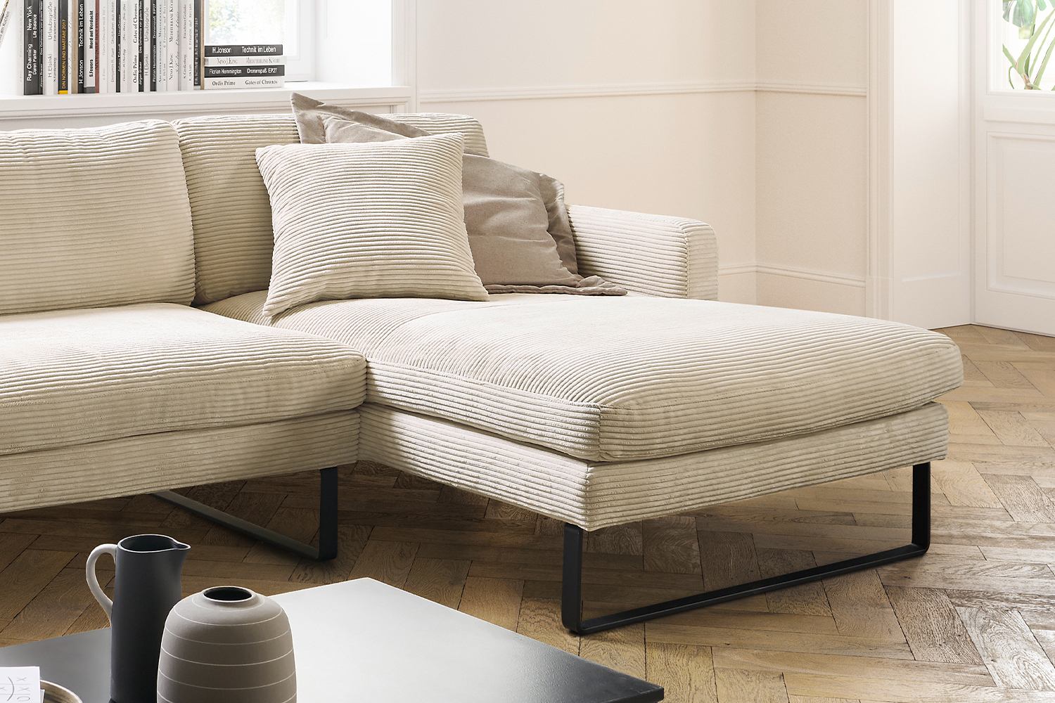 • Bezug aus trendigem Cordstoff