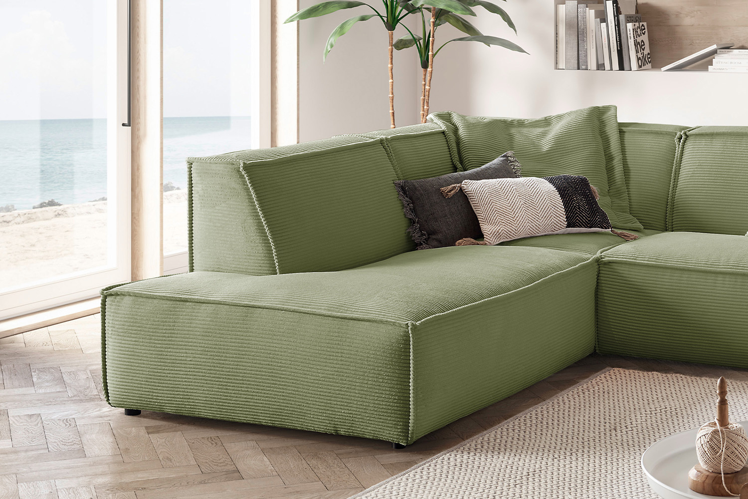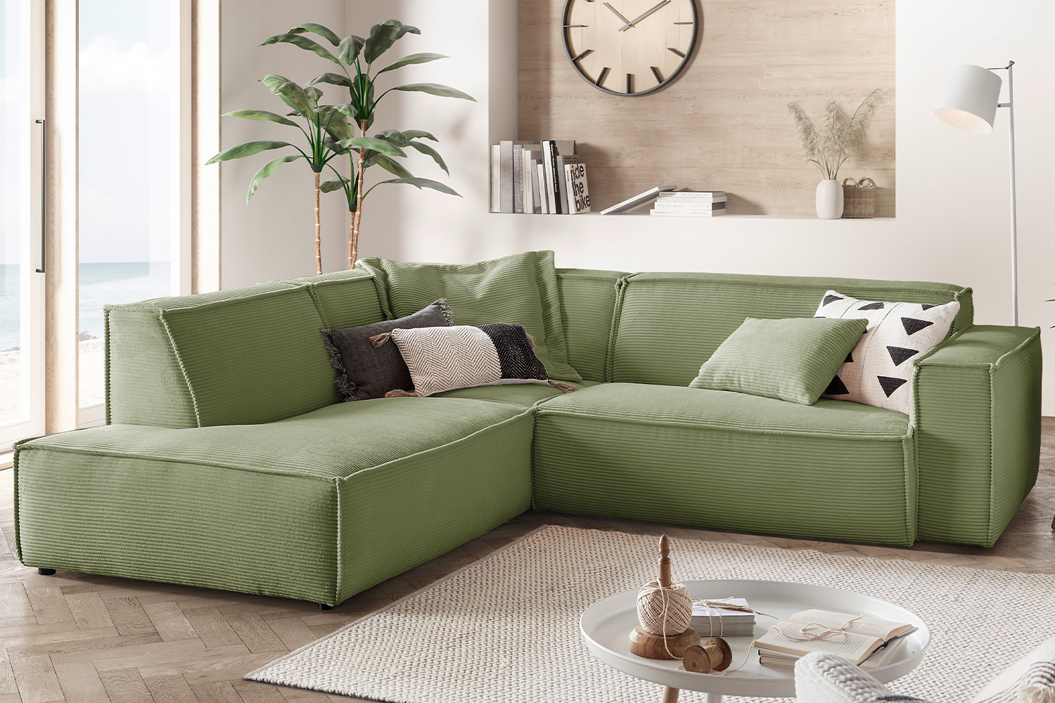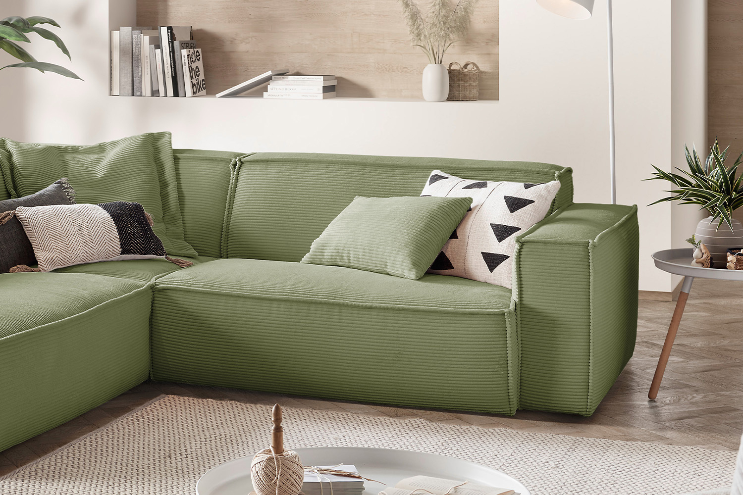 Produktinformationen "KAWOLA Sofa SAMU Ecksofa Cord olivgrün"