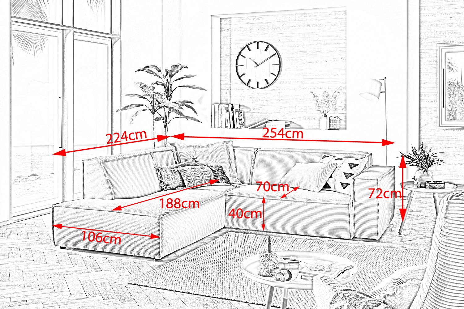 Das KAWOLA Ecksofa SAMU besticht durch seinen hervorragenden Sitzkomfort, der durch den äußerst weichen und legeren Polsteraufbau zustande kommt und zum Verweilen und Entspannen einlädt. Die Polsterung passt sich der Körperform an; Sitzabdrücke sowie Wellenbildung der Bezüge sind warentypisch. Seine moderne und urbane Form verleihen dem Sofa sein unverwechselbares Aussehen und bieten ausreichend Platz, um gemütliche Abende zu verbringen. Mit seinem zeitlosen Design fügt es sich nahtlos in jede Umgebung ein und macht auch frei im Raum stehend eine gute Figur. Wenn Sie Ihrem Wohnzimmer einen außergewöhnlichen Anstrich verleihen wollen, ist das Sofa SAMU definitiv das Richtige für Sie!Produktdetails