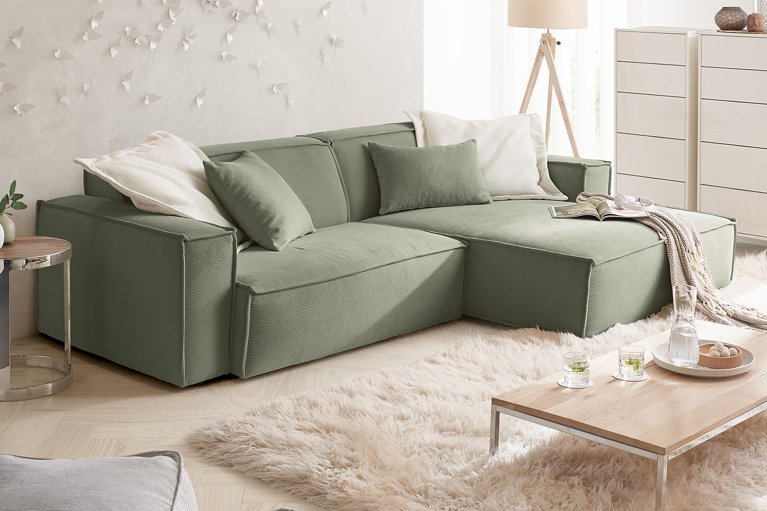 Produktinformationen "KAWOLA Sofa SAMU Ecksofa Feincord olivgrün"
