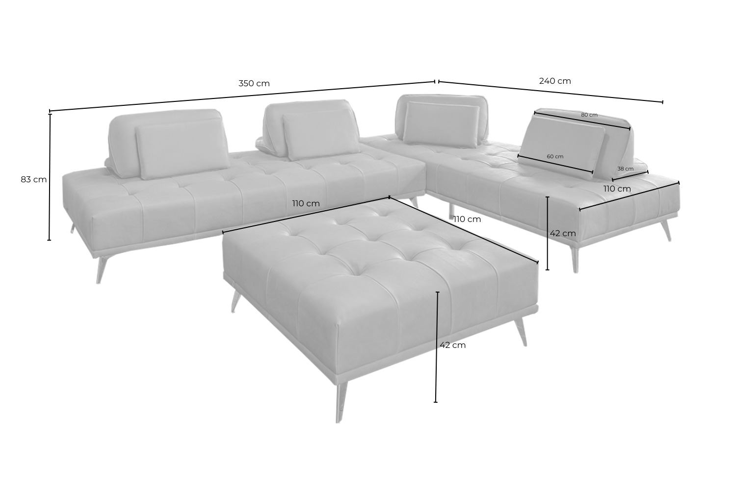 - Breite Hocker: 110 cm