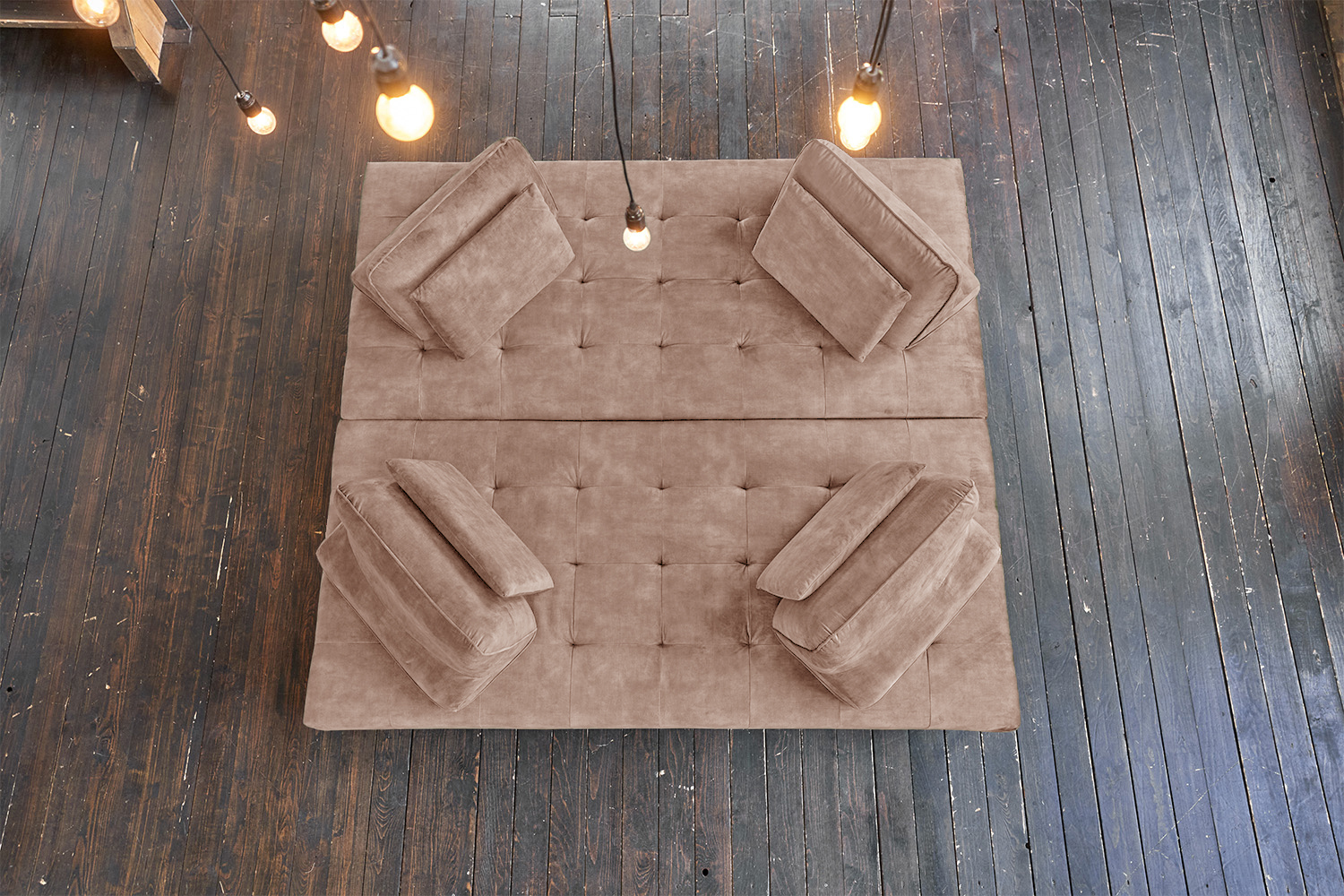 • Rücken- und Zierkissen sowie Module können individuell verschoben werden